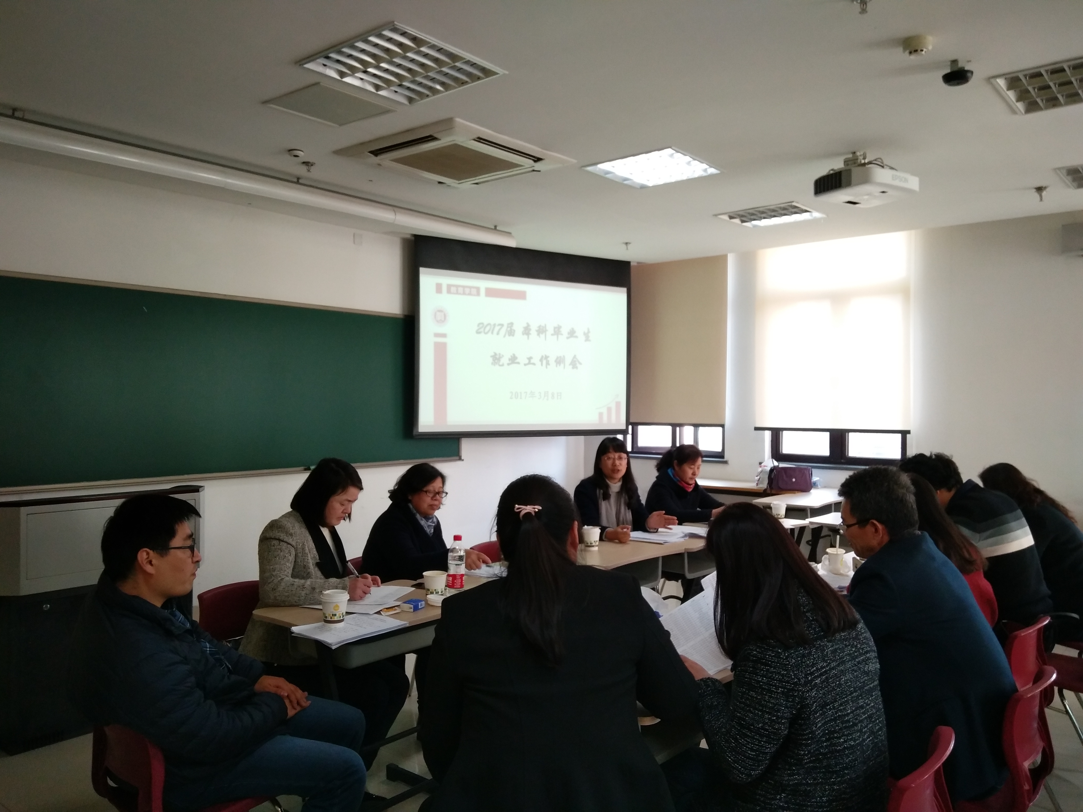 2017年3月8号下午1点半,教育学院在恕园13-305召开2017届毕业生就业工作例会,会议由教育学院党委副书记蒋璐敏老师主持,党委书记吕静老师出席并作出重要讲话。