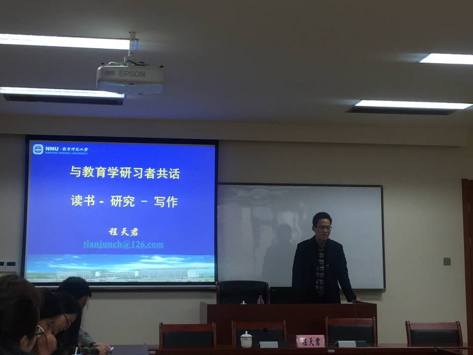 程天君教授从自身求学经历谈起,用亲身经历劝诫读书之重要,他指出做科研就要多读书。就如何读书,程天君教授提出了几点看法:1.“无边界、无禁区”地读。在读书的过程中,不仅仅局限于教育学名著,也要广泛阅读教育学专业以外的名著甚至可以观看一些新闻评论节目。这既能为研究提供灵感,也可以使思维得到良好的训练。2.经典与前沿结合地读。经典名著是做研究的重要理论基础,读书要从阅读经典出发,学会与经典对话,从经典名著中寻找研究灵感。但在阅读经典的过程中,更要回到现实,关注社会热点,使研究更“接地气”。3.国内与国外相结合地读。在对待中西经典的态度上,我们不能有失偏颇,既要阅读西方经典名著,也要结合国内实情,读本国学者撰写的经典名著,使我们的知识体系更加完善。