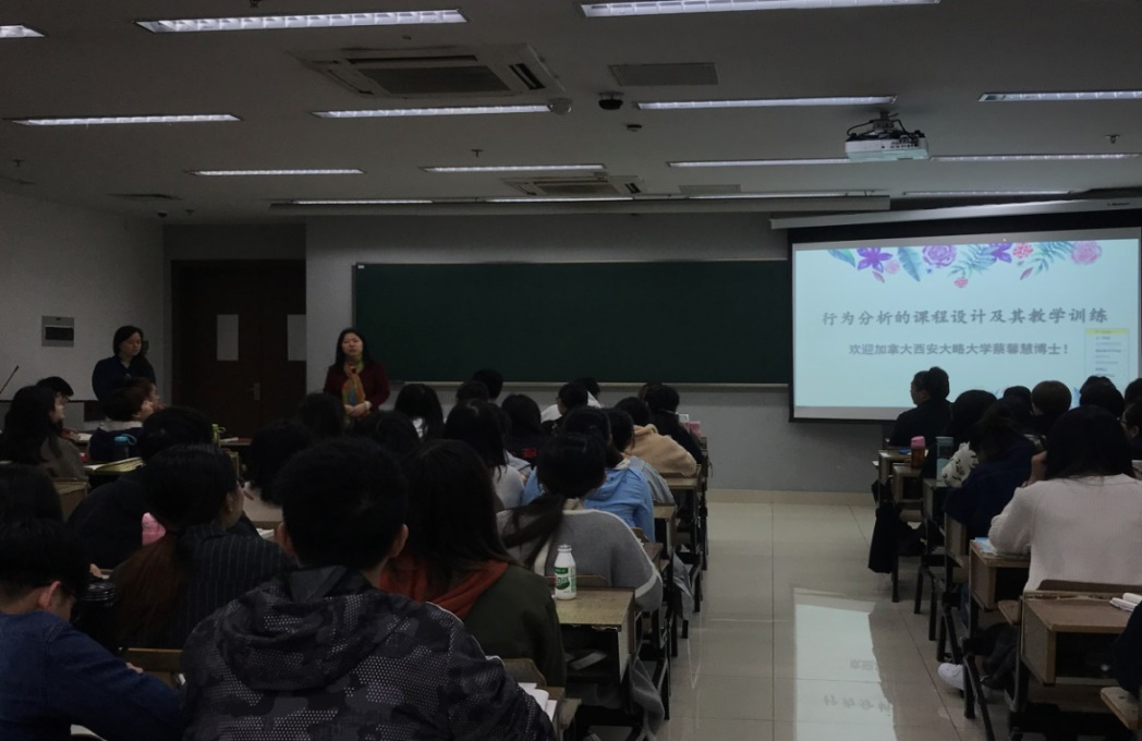 期间,蔡馨慧博士还与特殊教育专业教师与研究生进行专业交流,亲自指导研究生进行行为课程设计与教学演练。