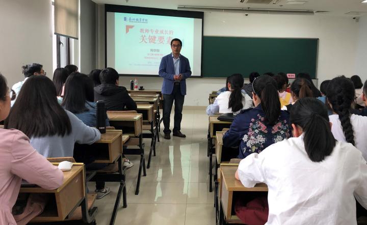 2018年4月11日下午,浙江嘉兴教育学院师资培训处处长陶李刚应邀来天英足球即时比分 给本科生和研究生做了以“教师专业成长的关键要素”为主题的讲座,讲座由严从根副院长主持。