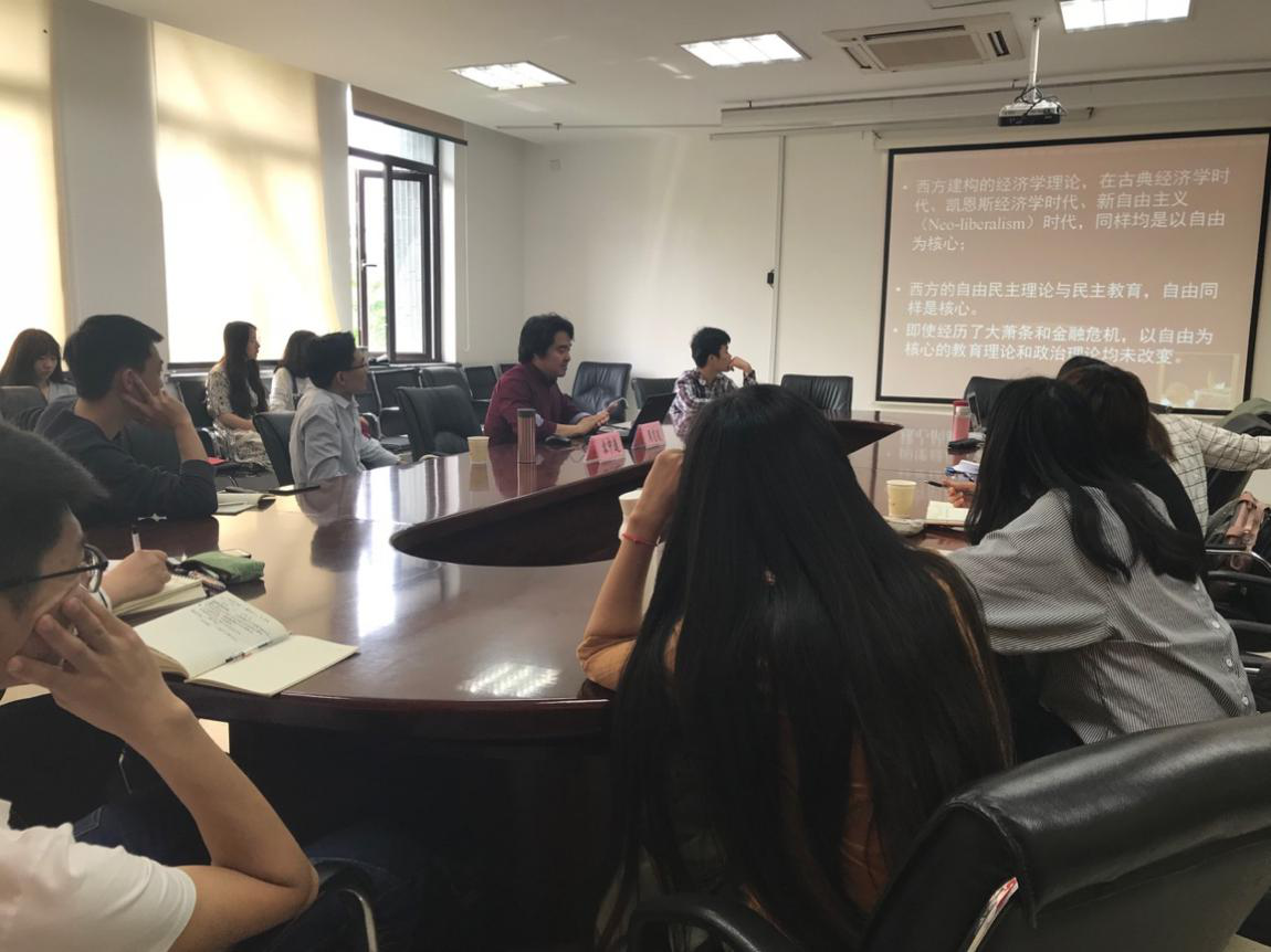2018年5月10日下午,天英足球即时比分 举办了“容错教育学”学术讲座暨教育学原理专业读书报告会,活动由容中逵教授主持,学院40余名老师及研究生参加了本次学术交流活动。