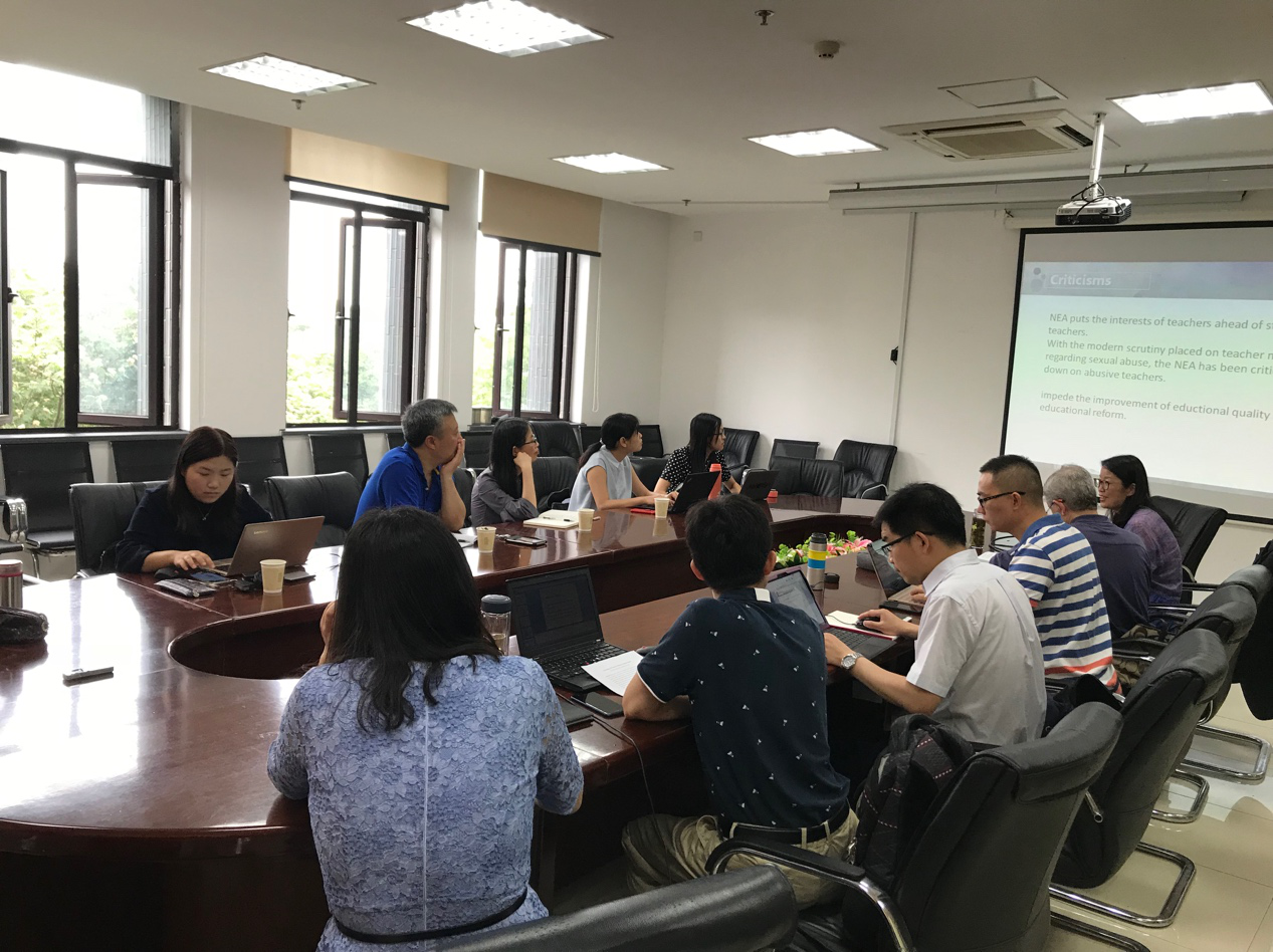 2018年6月9日(周六)上午9时,叶圣陶教育学术沙龙系列活动第四场在恕园36号楼301室举行。该沙龙由张华教授主持,Leonard J. Waks教授点评,杭州师范大学的许建美、戎庭伟,浙江大学的屠莉娅、刘徽,陕西师范大学的冯加渔等教师分别基于自己的研究项目进行了英文汇报,并开展了交流和研讨活动。