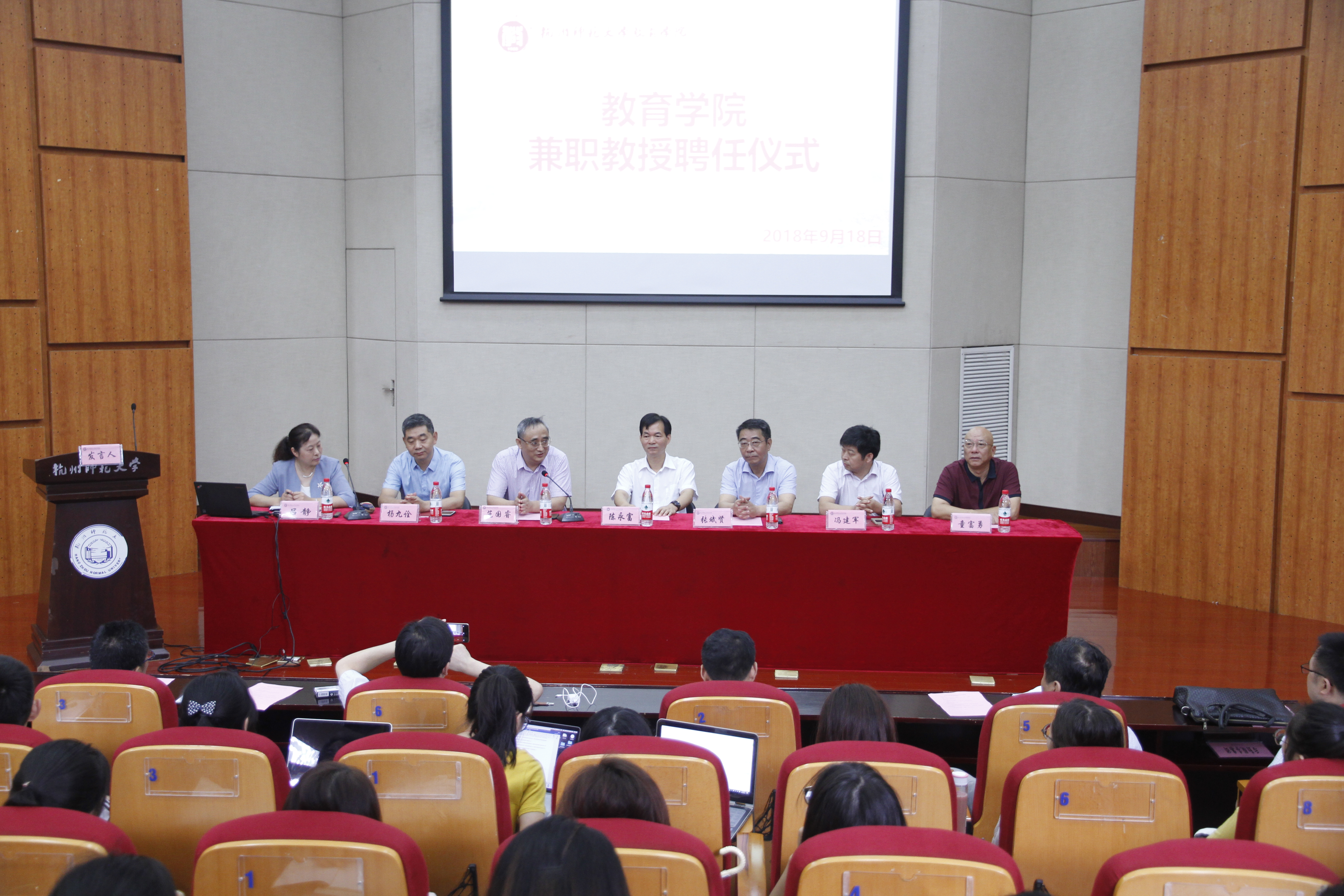 兼职教授聘任仪式在恕园7号楼200座举行。副校长陈永富教授,特聘教授范国睿先生,特聘教授冯建军先生,华东师范大学教授、博士生导师杨九诠先生,特聘教授、教育学院名誉院长张斌贤老师、教育学院学术委员会主任童富勇教授以及天英足球即时比分