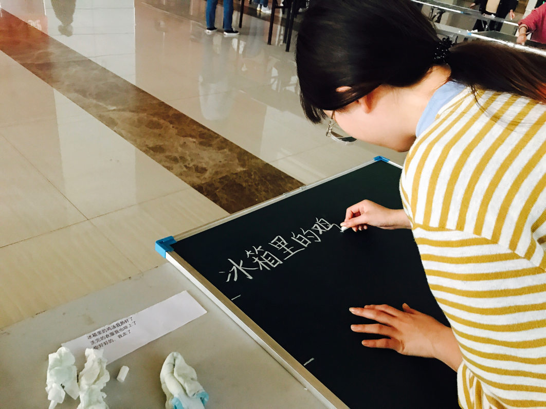 赛前,学生携带“经院三宝”之一的黑板到达现场,通过签到获取个人编号,比赛时以给定的文字为书写内容,进行为时一小时的书写。