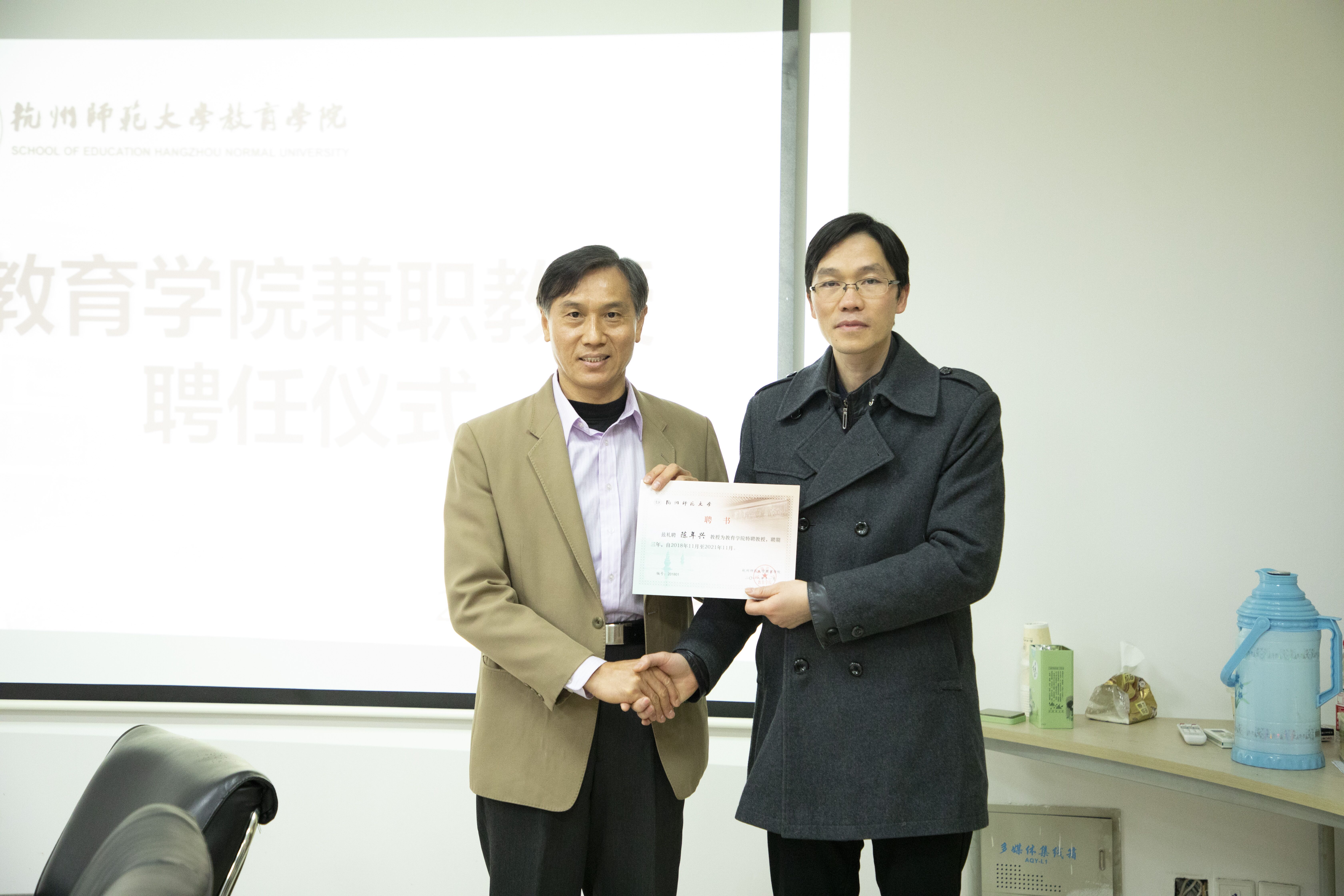 2019年1月2日上午,教育学院在恕园36-301举行了陈年兴教授受聘杭州师范大学教育学院特聘教授的聘任仪式。陈年兴教授是澳洲格里菲斯大学教授,曾任IEEE学习科技技术委员会主席。研究领域包括教育机器人,体感学习,物联网与教育,区块链技术在教育上的应用等。发表超过400多篇国际期刊论文,获得三次杰出研究奖。担任教育技术与社会(Educational Technology & Society)学术期刊的主编。教育技术系的师生参加了本次授聘仪式。聘任仪式由教育技术系主任杨俊锋教授主持。教育学院副院长严从根为陈年兴教授颁发聘任证书,并代表学院对陈年兴教授的加盟表示热烈欢迎。