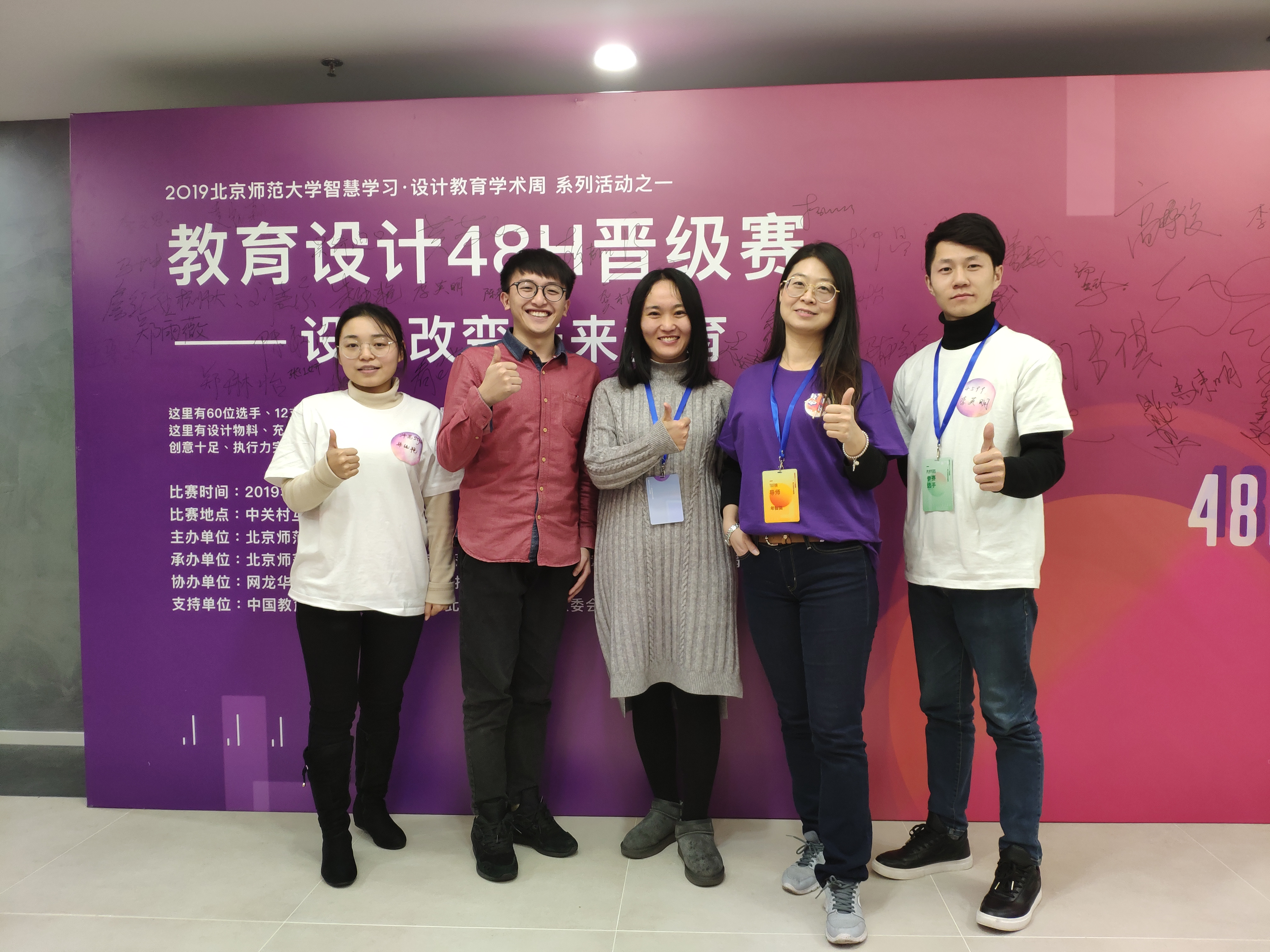 同时,刘嘉豪、李英明、朱纯艳、陈敏浈同学也参加了1月5日—7日在中关村互联网创新教育中心隆重举办的48h教育设计晋级赛,教育和设计界专家汇聚一堂。来自北京师范大学、北京化工大学、江苏师范大学、东北师范大学、首都师范大学、杭州师范大学、深圳大学等多所全国高校教育技术学、产品设计、艺术学、软件工程等专业的51位同学自由组成11支战队,在48小时中通力合作,完成设计挑战,比拼创新才智。