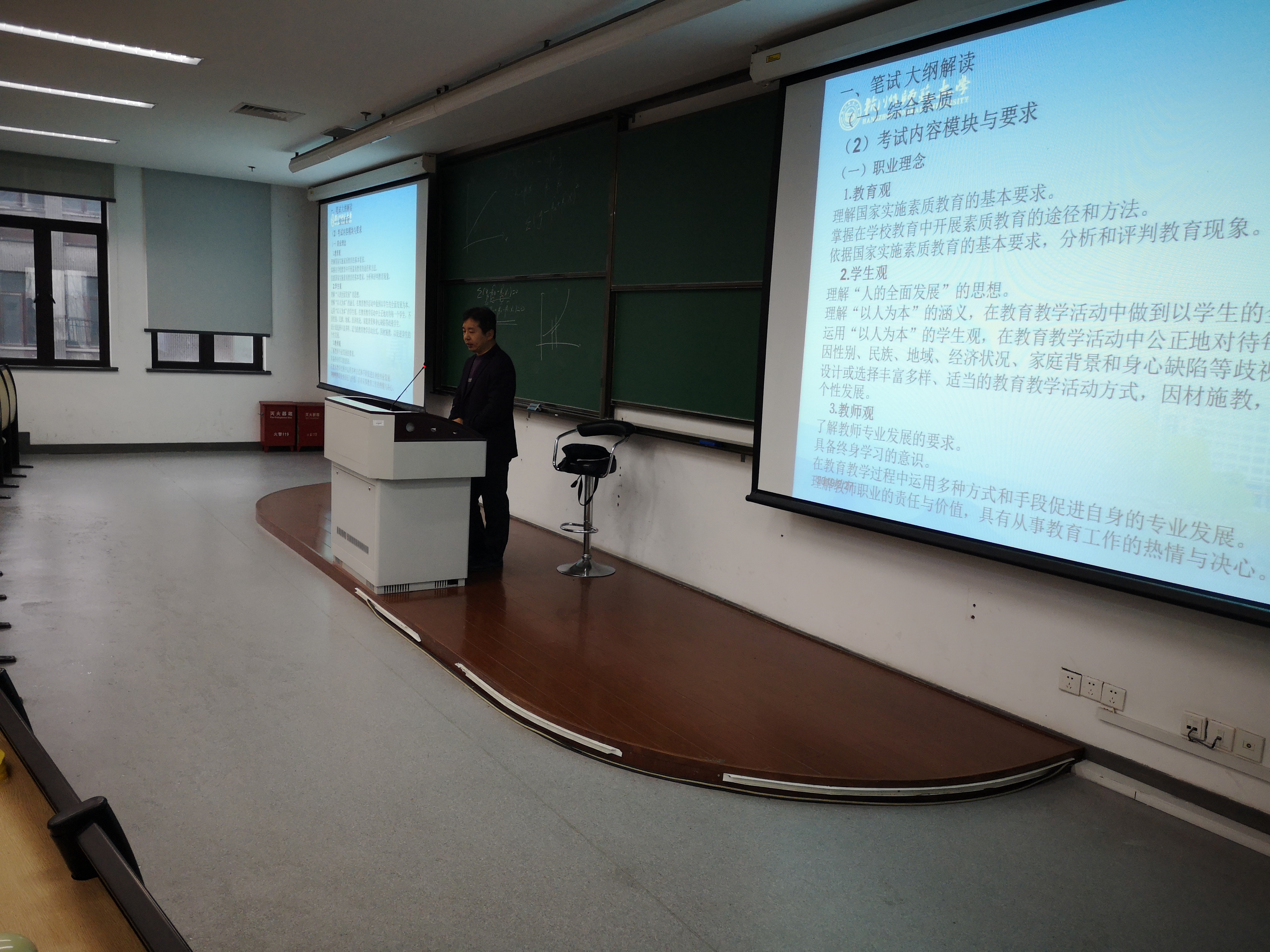 2月27日下午,王雁琳老师在全国教师资格证考试前夕为学生们开展了一次专题讲座。共次讲座分两个环节。第一环节是教师资格证笔试的考前指导。王老师就小学、中学教师资格证笔试科目涉及的内容模块与题型进行讲解。讲座中指出了考纲中的重点内容,为同学们接下来的复习备考提供了方向指导。老师还指出了简答题、材料题、教学设计以及作文的评分标准和答题技巧,并结合真题具体分析,为同学们在考试过程中规范答题提供帮助。第二环节是教师资格证面试的简单指导。让同学们对面试的模式和题型有了一定的了解。讲座到座率很高,同学们普遍反映本次讲座为最后阶段的冲刺指明了方向。
