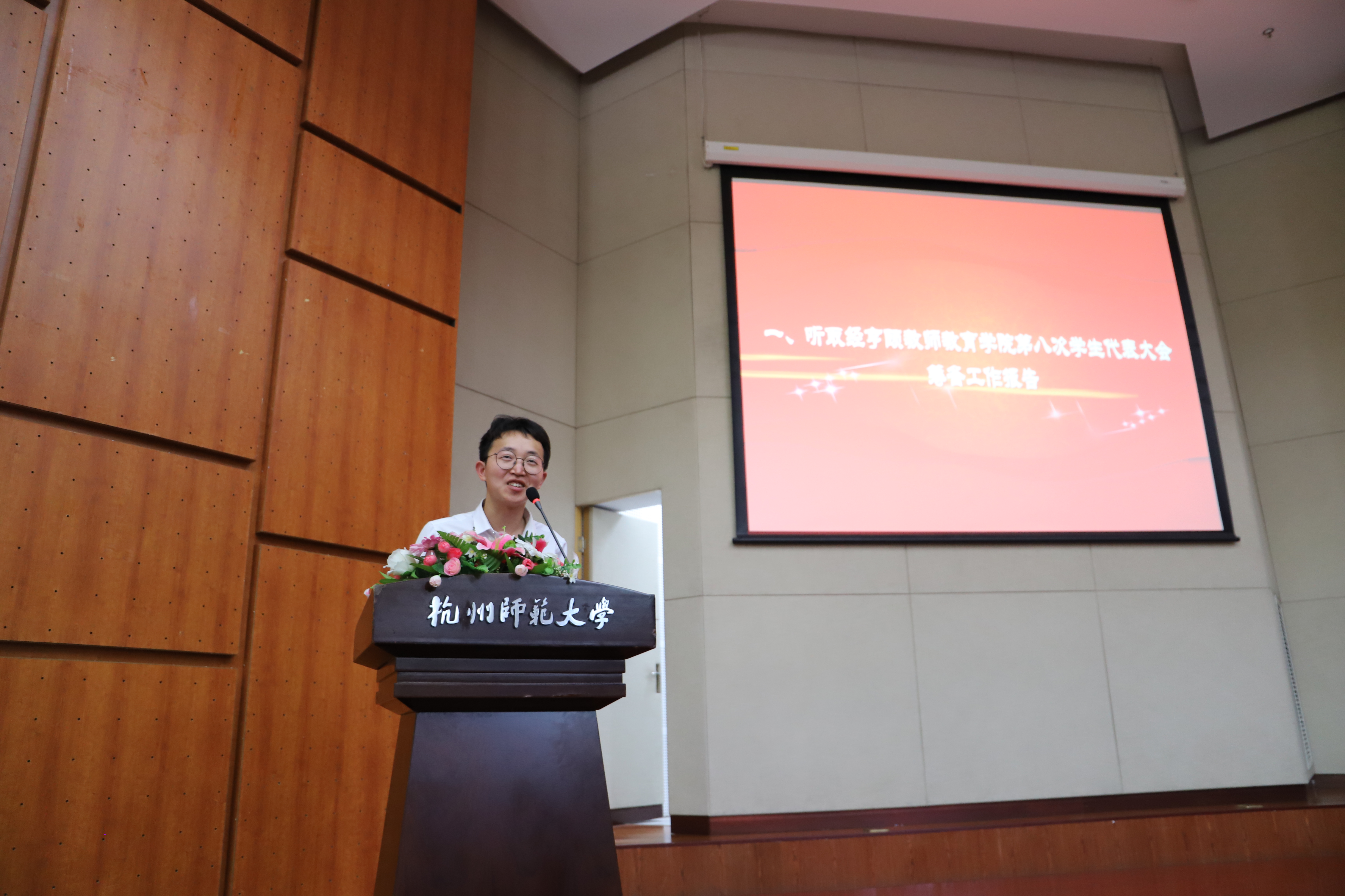 5月22日下午一点,经亨颐教师教育学院第八次学生代表大会预备会议和正式会议在恕园7号楼200座顺利举行。出席的有学院团委齐姗老师和毛少汉老师,校学生会副主席周炳乐同学,沈钧儒法学院学生会主席顾惟一同学。