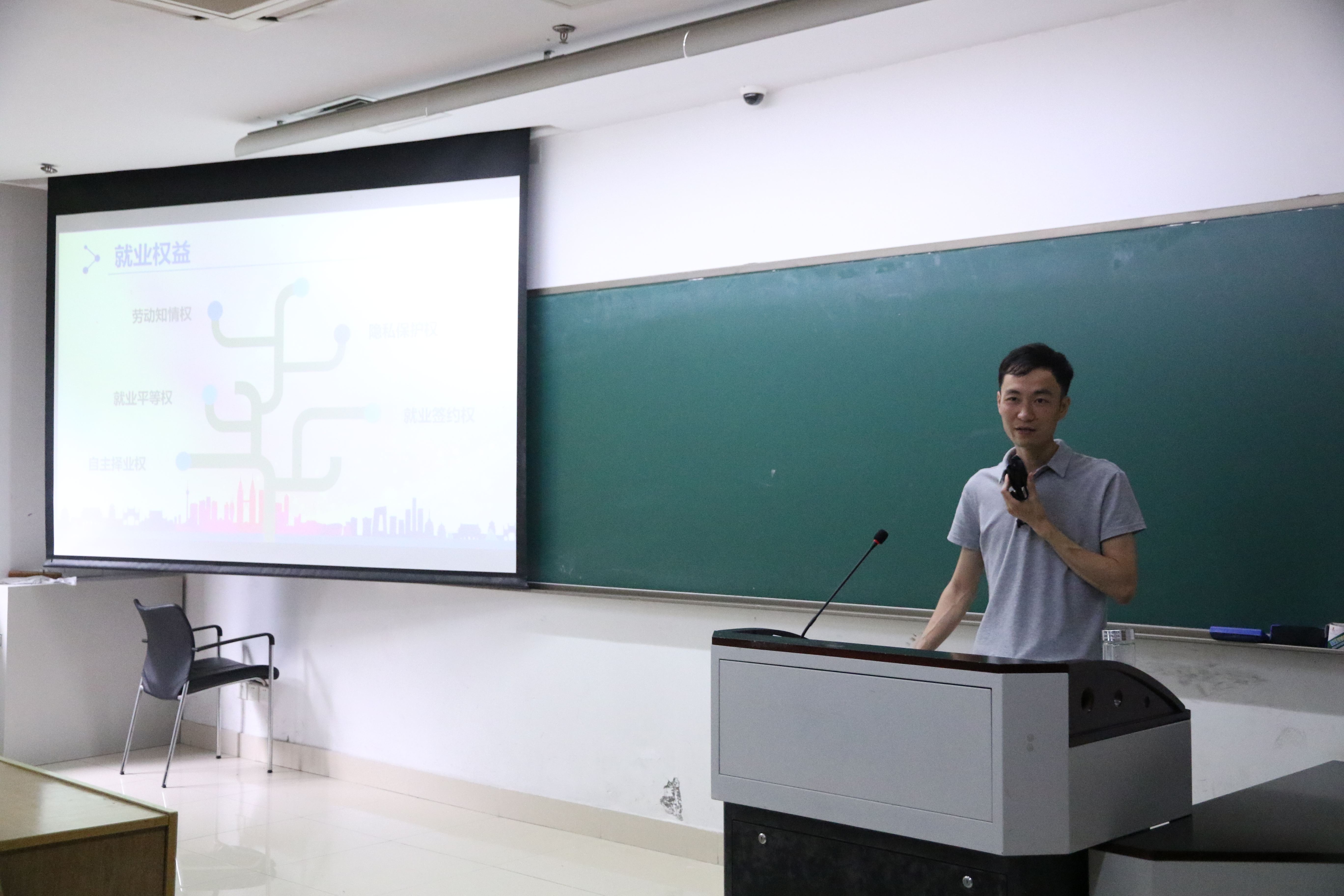 于6月27日上午在恕园11号楼开展了“就业权益保护”的讲座,全体16级同学参与此次讲座,主讲人是来自沈钧儒法学院的马利峰老师。