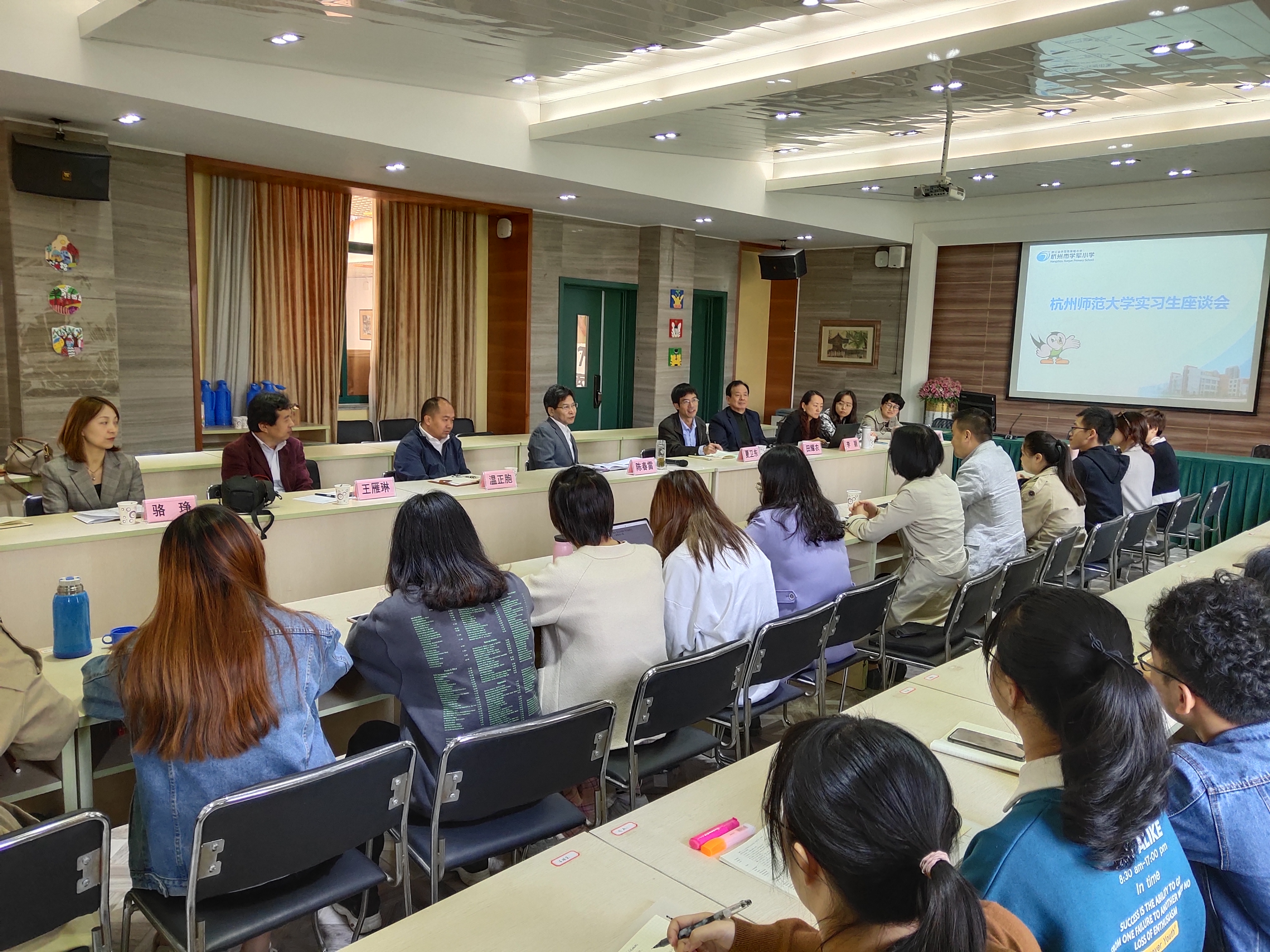 陈春雷书记提出,教师应当用心教学,满怀激情。对于新手教师如何进行自我素养提高的问题,陈书记说道关键在于一个“悟”字,如何落实到实习生活中,那便是在实习过程中寻找教师榜样,在自己的身上寻找不足之处,多听多看,寻找差距,努力追赶。陈书记建议实习生们应当善于总结,要有思想深度,格局有多大,世界就有多大。接着,各学院实习生带队老师介绍了实习进展情况,杭师大部门学院领导介绍了各学院的发展状况。最后,许宏书记对杭师大实习生的认真努力给予肯定,在促进两校进一步的合作上与陈春雷书记达成一致的想法。