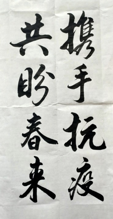 楼张晴同志用墨笔写下战胜疫情