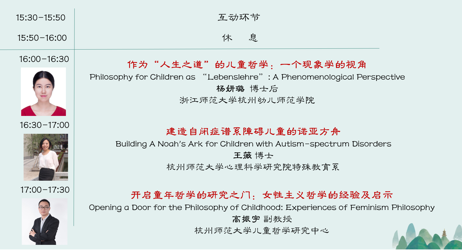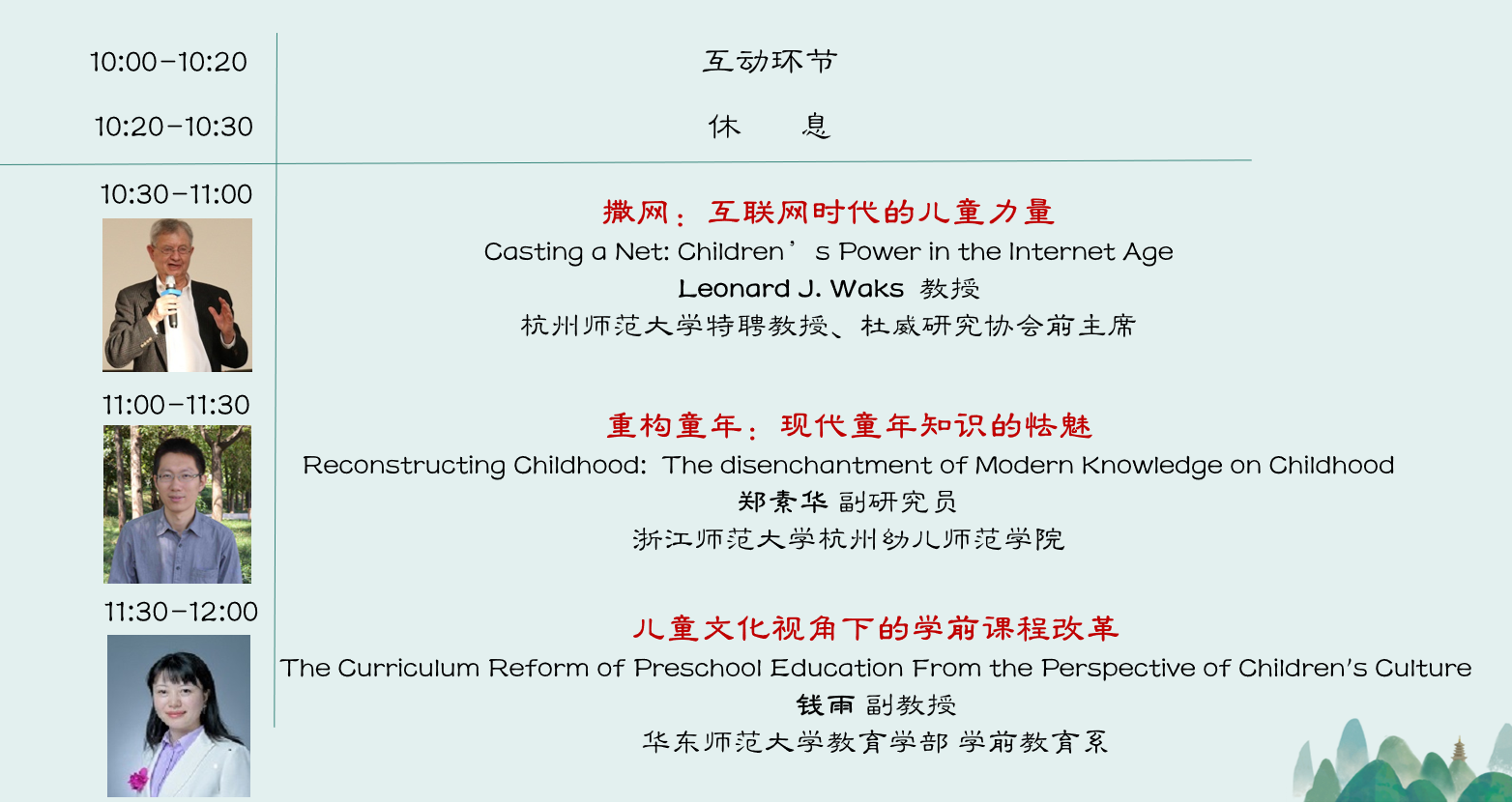 The seminar has invited 12 national and international scholars specializing on child (childhood) studies, including the CIPSH chair of New Humanities in University of California (Irvine) Professor Hsiung Ping-chen, Professor Liu Xiaodong from East China Normal University, Professor Yu Wei from Northeast Normal University, Former President of John Dewey Society and Professor Leonard J. Waks from Temple University in USA, Associate Professor Qian Yu from East China Normal University, Associate Research Professor Zheng Xuhua from Zhejiang Normal University, Associate Professor Zheng Minxi from Fujian Normal University, Dr. Wang Wei and Associate Professor Gao Zhenyu from Hangzhou Normal University, Dr. Sabine Yang from Zhejiang University etc.They share ideas and research discoveries with each other and with audience from local primary schools, kindergartens and universities about various issues on children and childhood from the disciplines of philosophy, sociology, education, history, literature and psychology.