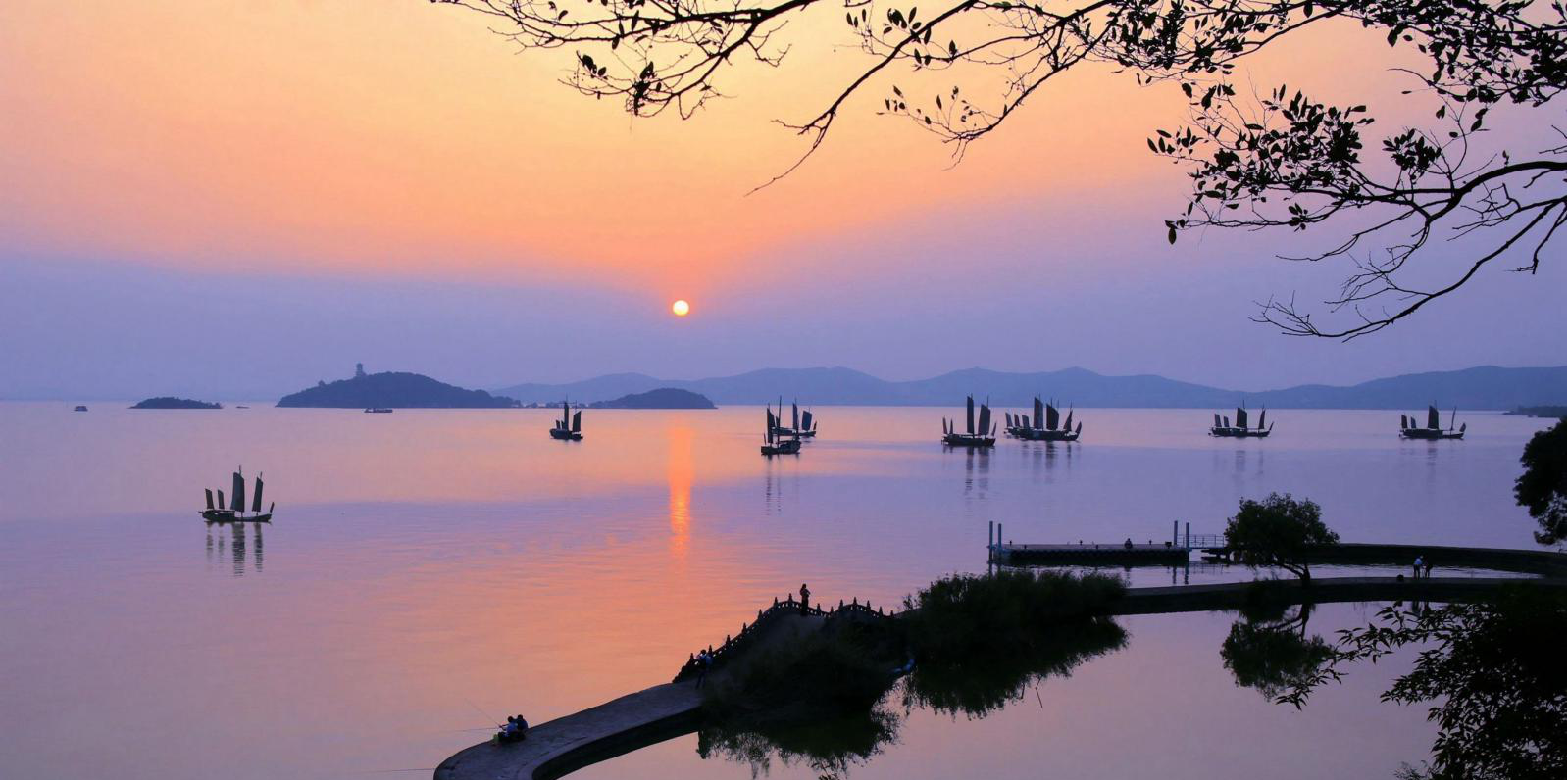 Located in the southern part of the Yangtze River delta in Wuxi, Lake Tai is the third largest freshwater lake in China. With a surface area of about 2,338 square kilometers (about 902 square miles), it is a famous scenic spot in China and is famed for its lake, hills and splendid man-made scenery.