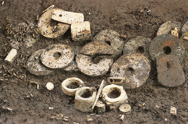 For example, cong — the jade piece that forms a quadrangle tube with a circular inner section — is the most typical type of artifact being unearthed in Liangzhu. In 1986, the biggest known item of this kind which weighs 6.5 kilograms and is often dubbed the "King of Cong", was found in Fanshan Cemetery in the city ruins.