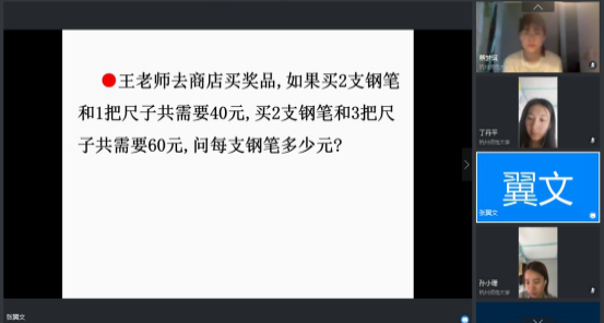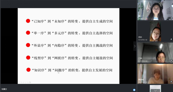 2020年5月18日,杭州师范大学教育学院特聘讲席教授、浙江省小学数学特级教师、正高级教师、杭州市滨江实验小学校长张翼文老师继续以“点化儿童思维,内化数学素养”为主题,通过钉钉平台为2019级数学方向的教育硕士学生进行网络在线授课,讲授如何做好并且在课堂中落实教学设计。