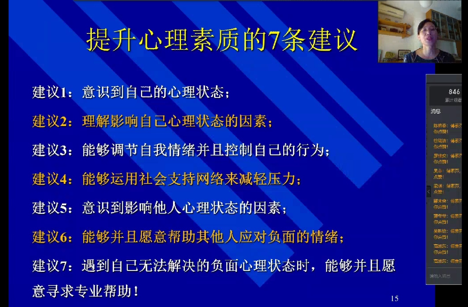 据悉,本次讲座系天英足球即时比分 “复学后心理关怀和心理健康教育”系列活动的第一弹。此后学院学工线和心理学系强强联合,将结合疫情下同学心理健康的需要,开展更多的讲座和有趣的心理游戏。
