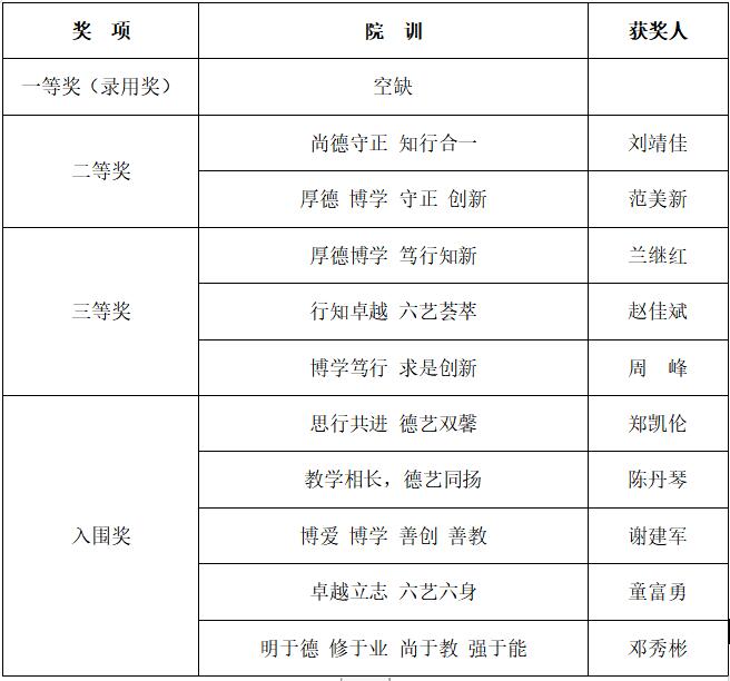 根据《教育学院关于开展院训征集的通知》,学院组织专家对应征的院训作品进行了系列评审,共评选出了二三等奖和入围奖共10项。