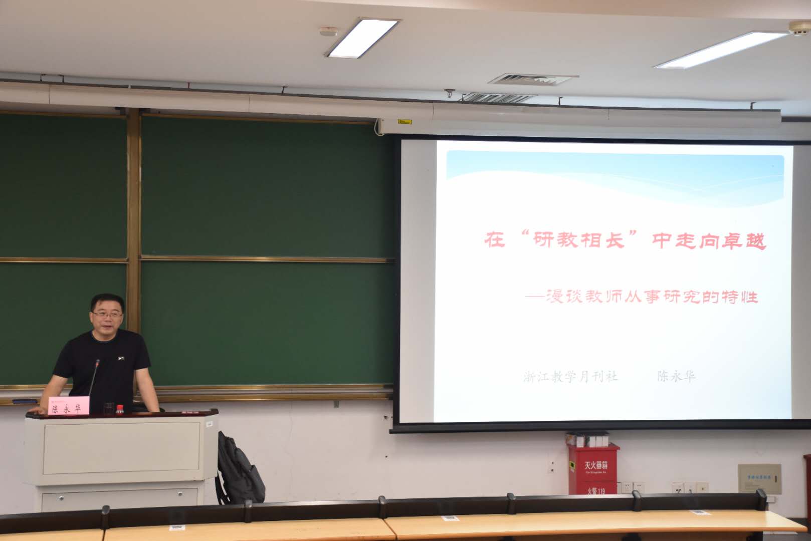 7月4日下午,天英足球即时比分 第五十三讲教育家大讲堂在恕园31号楼201举办。本次讲座特邀浙江教育月刊社主编陈永华老师主讲,以“在‘研教相长”中走向卓越——漫谈教师从事研究的特性”为主题。