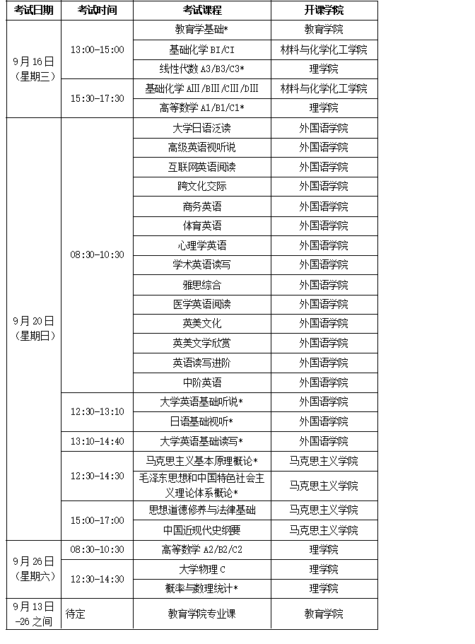 备注:1、带*标记考试课程含有2019-2020-1学期开设课程的二次缓考。