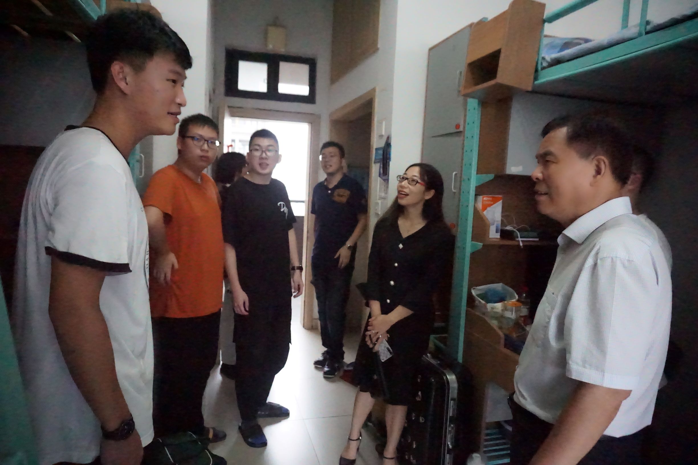 会后,郑院长一行走访看望了刚入住学生公寓的2020级新生。在走访过程中,郑院长一行在了解了新生住宿条件与新生在大学第一天的情况后,给新生们送去了温暖亲切的问候。同时也叮嘱新生在寝室要注意安全,防火、防电、防诈骗。在集体生活中要互相包容、互相帮助,共同营造良好的居住环境。