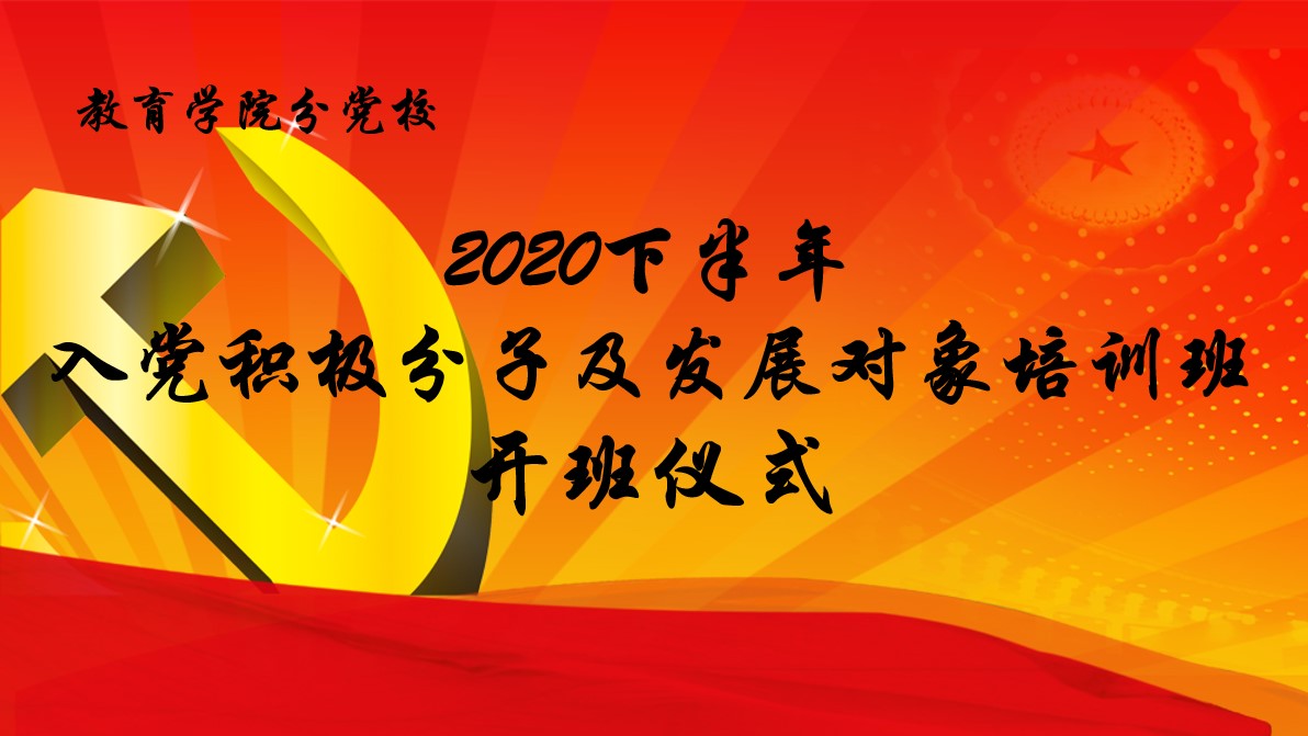 2020年10月23日下午,我校教育学院入党积极分子及发展对象培训班举行了开班仪式。培训班意在加强学员对党的认识,端正入党的态度,坚定入党决心,从思想和行为两个方面要求自己,争取早日加入党组织。