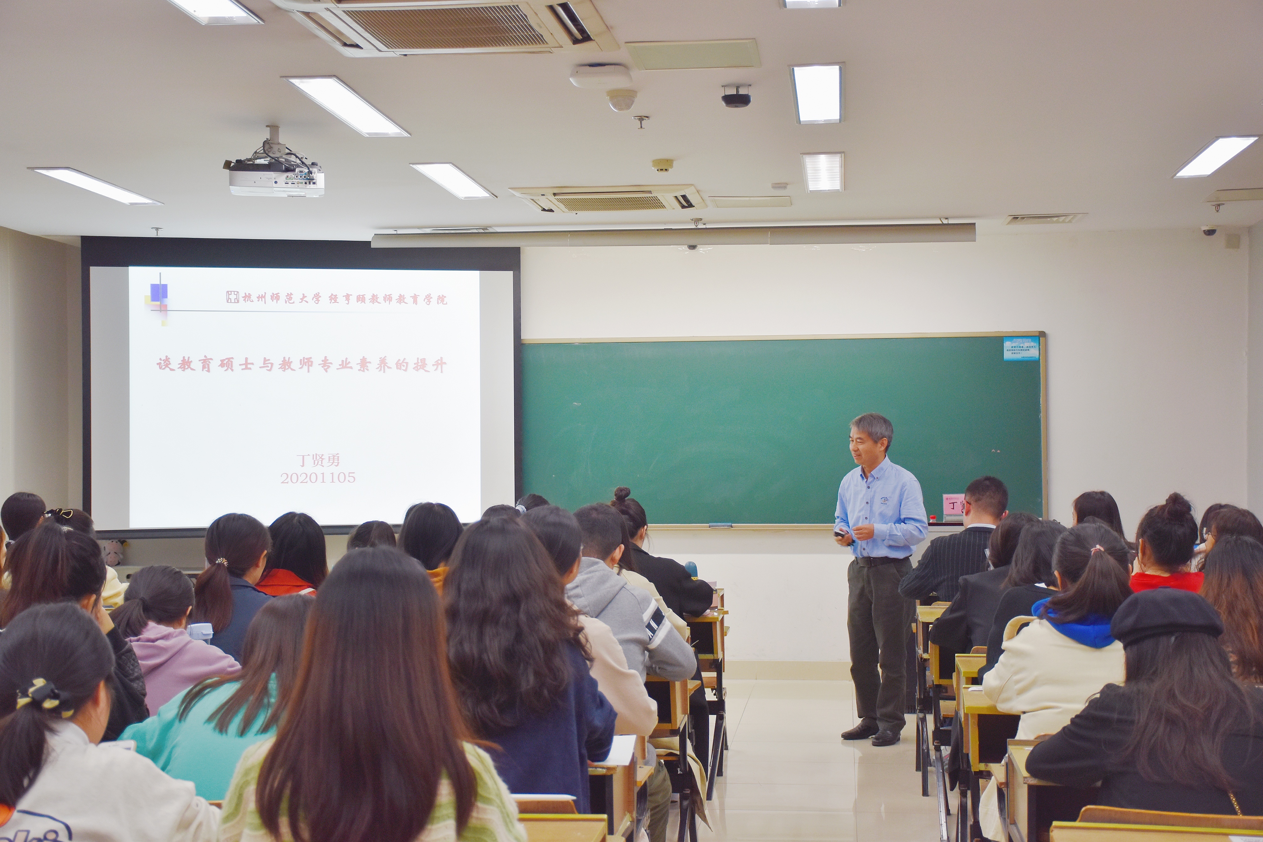 11月5日晚,经亨颐教师教育学院“子渊学术大讲堂”第一讲在恕园12号楼305教室举行。“全国优秀教师”、“全国教育硕士优秀指导教师”丁贤勇教授为天英足球即时比分 全体研究生带来了“谈教育硕士与教师专业素养的提升”专题讲座。