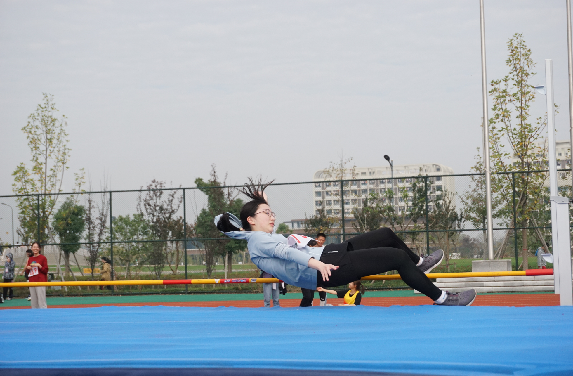 一根横杆静立,隔开了天与地;她步伐轻盈,身姿矫健,轻轻一跃便使它成为连接胜利与掌声的纽带,跃过的不仅是眼前的横杆,更是昨日的自己。
