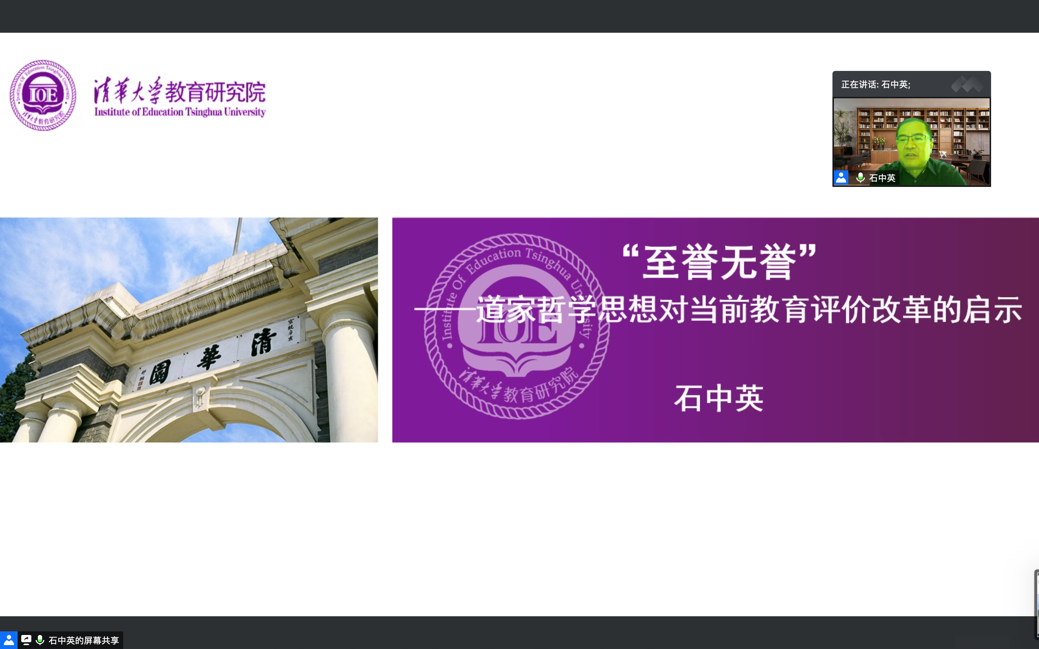 2020年11月14日下午,杭州师范大学教育学院特邀清华大学教育研究院院长、博士生导师,兼任北京明远教育书院院长的石中英教授,成功在腾讯会议交流平台举行题为“至誉无誉:道家哲学对当前教育评价改革的启示”的学术报告。本次报告由杭州师范大学副校长黄兆信教授主持。