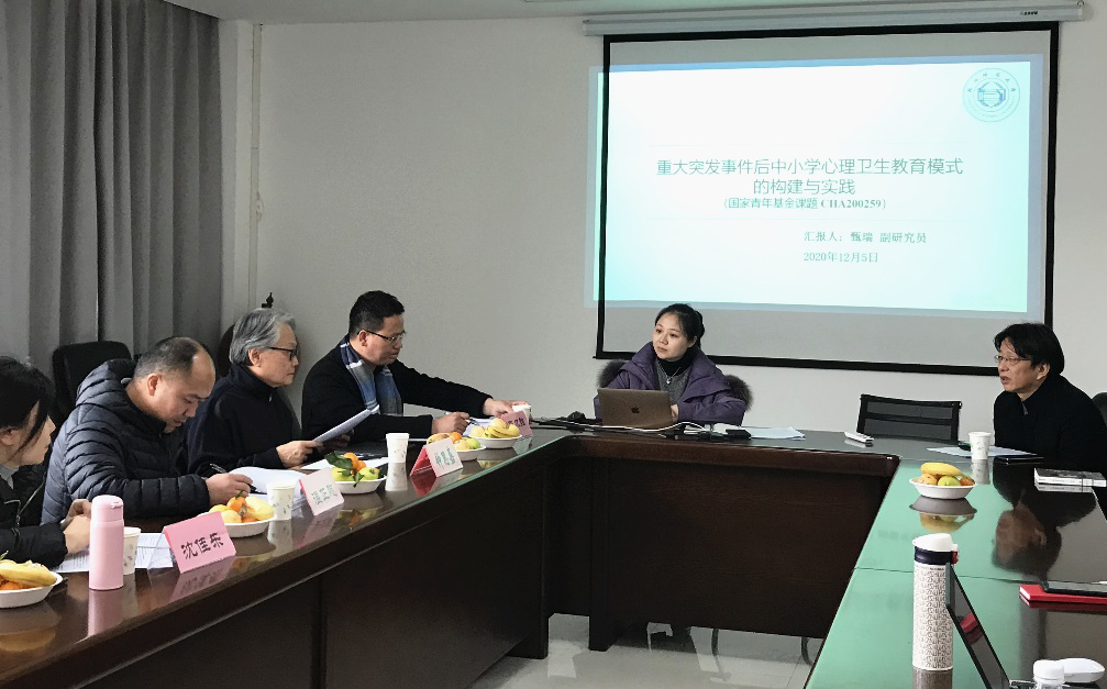 课题负责人主持的课题是“重大突发事件后中小学心理卫生教育模式的构建与实践”(课题编号:CHA200259),负责人分别从课题的选题依据、研究内容、思路方法、创新之处、预期成果等方面向专家组做了汇报。该课题拟以新冠疫情背景下中小学生心理反应的现状和发生发展机制等理论研究为基础,进行中小学心理卫生教育模式的构建与干预实践,从而加强中小学校在重大突发事件后的心理应对机制,形成以中小学校为核心的学生心理支持系统。