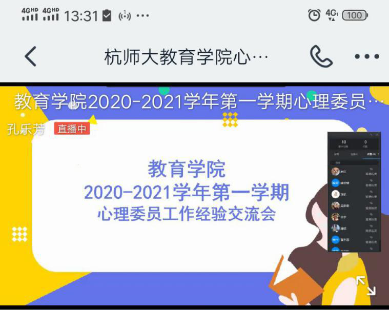 为增进学院心理委员工作经验,加强工作实务能力,同时也为了全面做好学院心理健康教育工作,于2020年12月16日,通过钉钉在线直播的方式,学院组织开展了,学院本学期心理委员工作经验分享会。我们邀请了,教育学院18级徐肖怡同学和外国语学院19级潘瑜同学,为天英足球即时比分 心理委员们带来了内容翔实、语言生动有趣的经验分享。学院全体心理委员观看了本次直播。