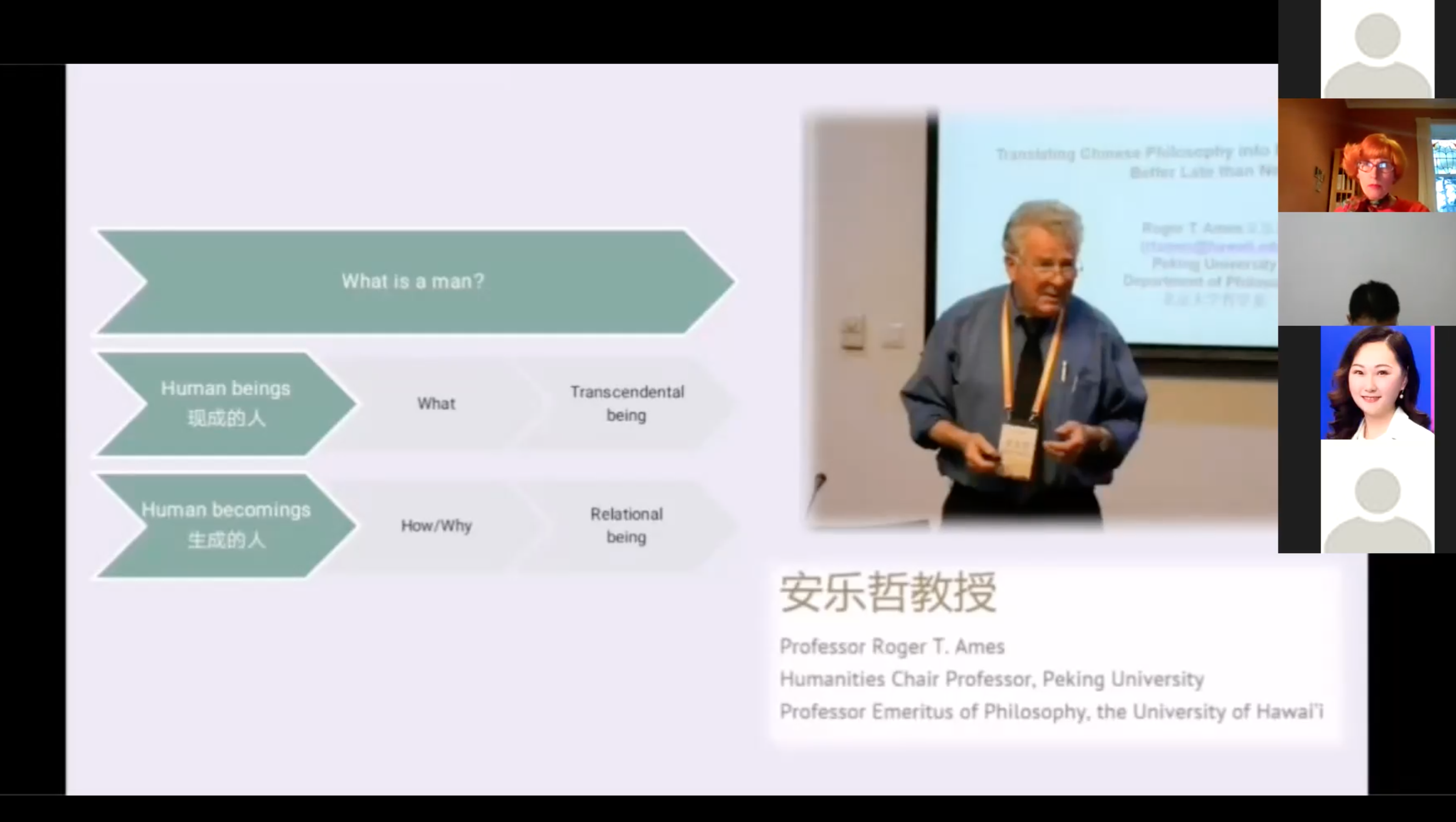 During the discussion, Dr. Zheng Suhua said that many teachers and parents in China are concerned about children's philosophy and hope to develop children's philosophy at home and school. Many teaching methods in university classrooms also draw on children's philosophy. Children’s philosophy is not only a philosophical method, but also a way of teaching. It has changed people’s views on children and students, realizing that student identity and child identity are mutually complementary with adult and parental identity: the existence of children makes mothers and students has made teachers. Dr. Zheng then introduced the work "Mother Mountain" and repositioned the mother's identity: mother and child grow together and depend on each other. Based on the "human beings" and "human becomings" proposed by the Sinology professor Roger T. Ames, Dr. Zheng showed that when discussing "human becomings," we can better discover the relationship between people, answering the essential question of what man is, and discussing where he comes and where he goes can promote people’s thinking at the level of becoming, and come the realization that the past and the future together constitute us in the present.