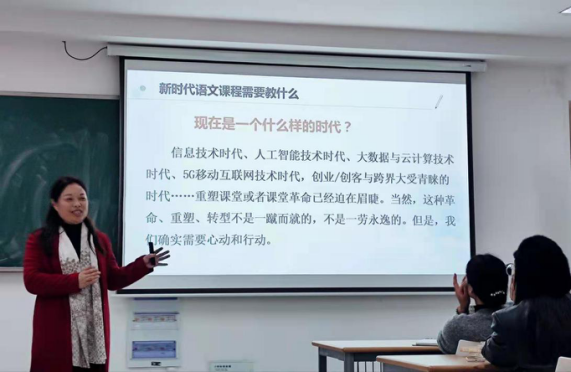 曹老师根据中共中央精神,向研究生传达了新时代的语文课程要培养学生四种能力。