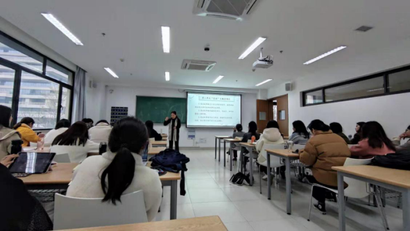 2021年3月16日,杭州市下城区教师教育学院研究院曹爱卫老师来到杭州师范大学,为杭师大教育学院小学教育语文方向研究生做了一场生动而又深刻的阅读教学设计讲座,讲座中,曹老师侃侃而谈、谈笑风生,深入浅出的给小学教育语文方向的研究生们介绍了“大概念”视角下的阅读教学设计,曹老师从新时代语文课程需要教什么、什么是大概念、以及基于“大概念”的阅读教学设计三个方面进行了详细的介绍,期间不乏有有趣的案例来进行举证和结合,使整个讲座的氛围有声、有色、有活力、又活泼,谈笑间,教学设计图展尽在眼前,知识尽收脑海。最后,在同学们热烈的依依不舍的掌声中曹老师结束这一场丰富多彩、妙趣横生的讲座。