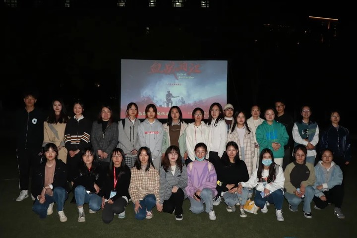 在纪念中国共产党成立100周年之际,4月9日晚,党委学工部、教育学院学工办共同举办的红色影片“露天影院”在A区小足球场内首次开播!当晚近300名师生齐聚一堂共同观看了影片《血战湘江》。