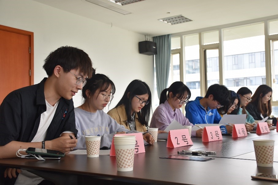 培训通过模拟无领导小组讨论面试的方式,分为两组进行。观察员与面试者结成一对一观察关系,观察并记录面试者在培训中的表现,并予以反馈和指导。第一组同学选取集团总经理案例进行讨论,研究生会同学分别就各位面试者的表现给予了点评。第二组同学讨论了市政府每日摘要申报的模拟议题,由第一组同学进行评价。在两场无领导小组讨论的过程中,同学们各抒己见、相互配合,顺利完成了讨论任务。讨论结束后,观察者们从发言时间、角色承担、团队协作与管理能力、分析判断能力、交流表达能力、动作与仪容仪表等多个方面对面试者进行了个性化反馈,并提出了针对性意见。