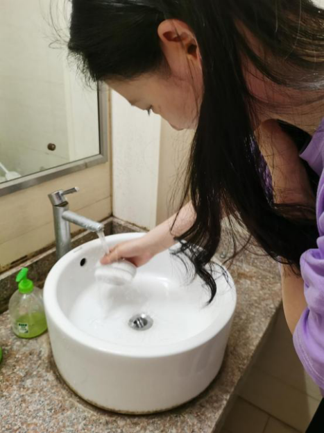 孟易南同学选择了寝室和阳台的水槽,寝室是大家集体生活的地方,是十分需要清理清洁的地方,水槽又是一个极其容易产生污渍的地方。集体生活,同学性格不同,对卫生的要求也不同,作为发展对象,积极主动为寝室创造良好的卫生环境是很有必要的。孟易南用刷子和洗洁精,对寝室和阳台的水槽进行了清洁。
