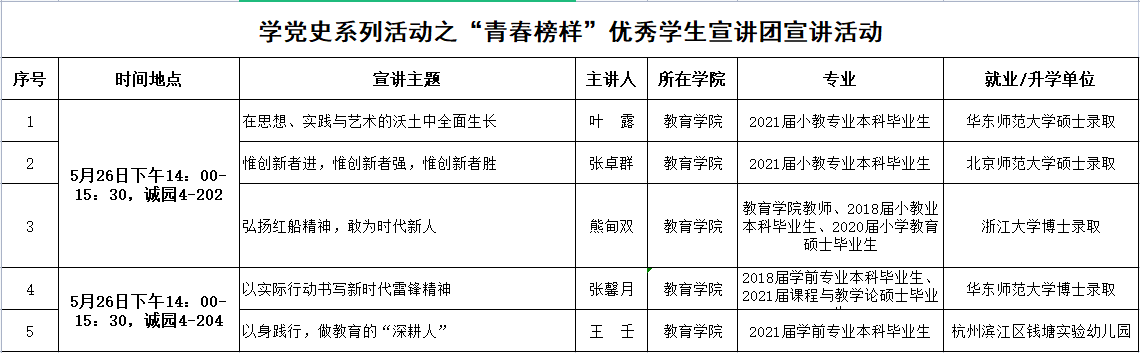 为隆重庆祝中国共产党成立100周年,不断筑牢青年学生理想信念,厚植学生爱党爱国爱校情怀,学校学院选拔优秀师生成立“青春榜样”优秀学生宣讲团在学院内开展宣讲活动,欢迎同学们踊跃参加,具体通知如下: