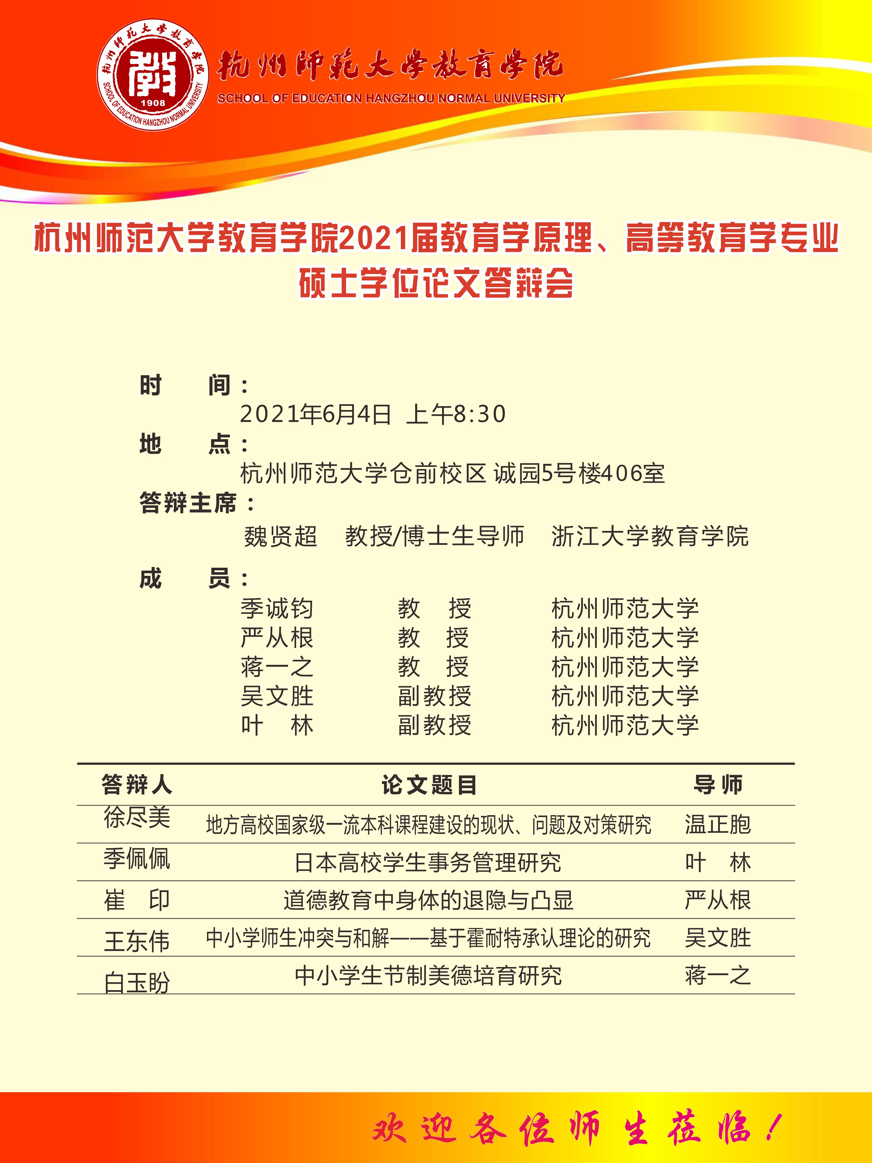 杭州师范大学教育学院2021届教育学原理、高等教育学专业 硕士学位论文答辩会