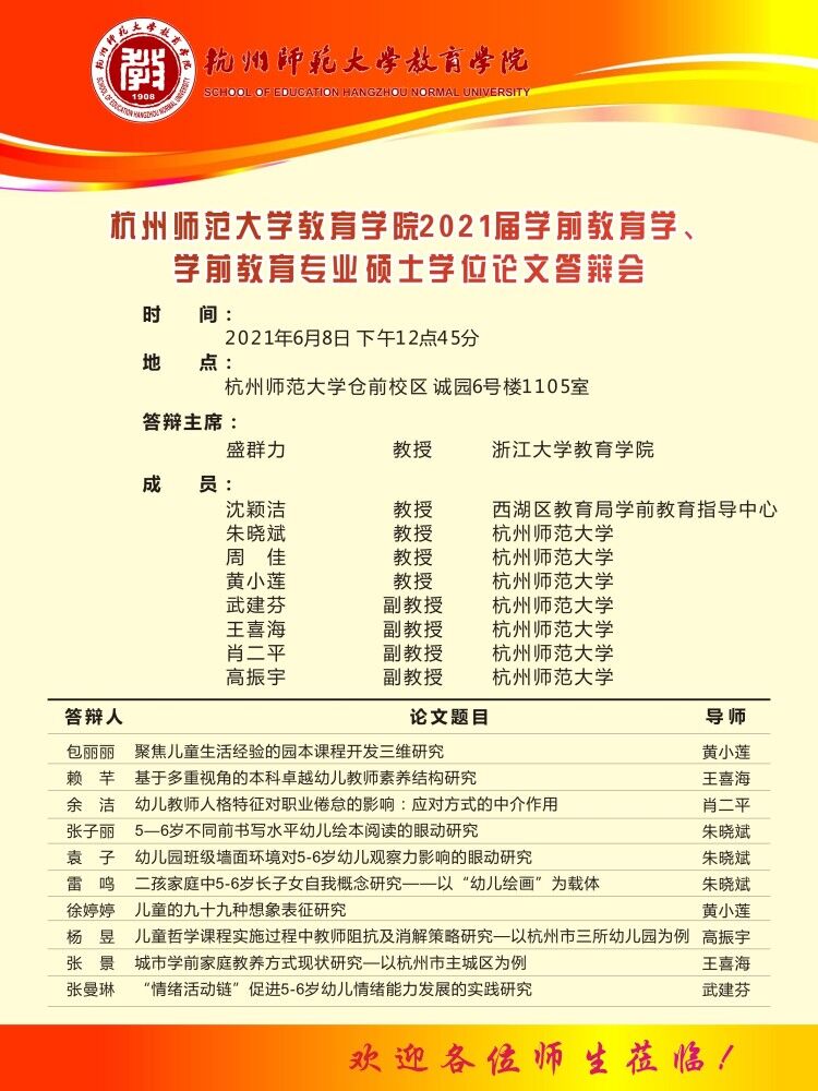杭州师范大学教育学院2021届学前教育学、学前教育专业 硕士学位论文答辩会
