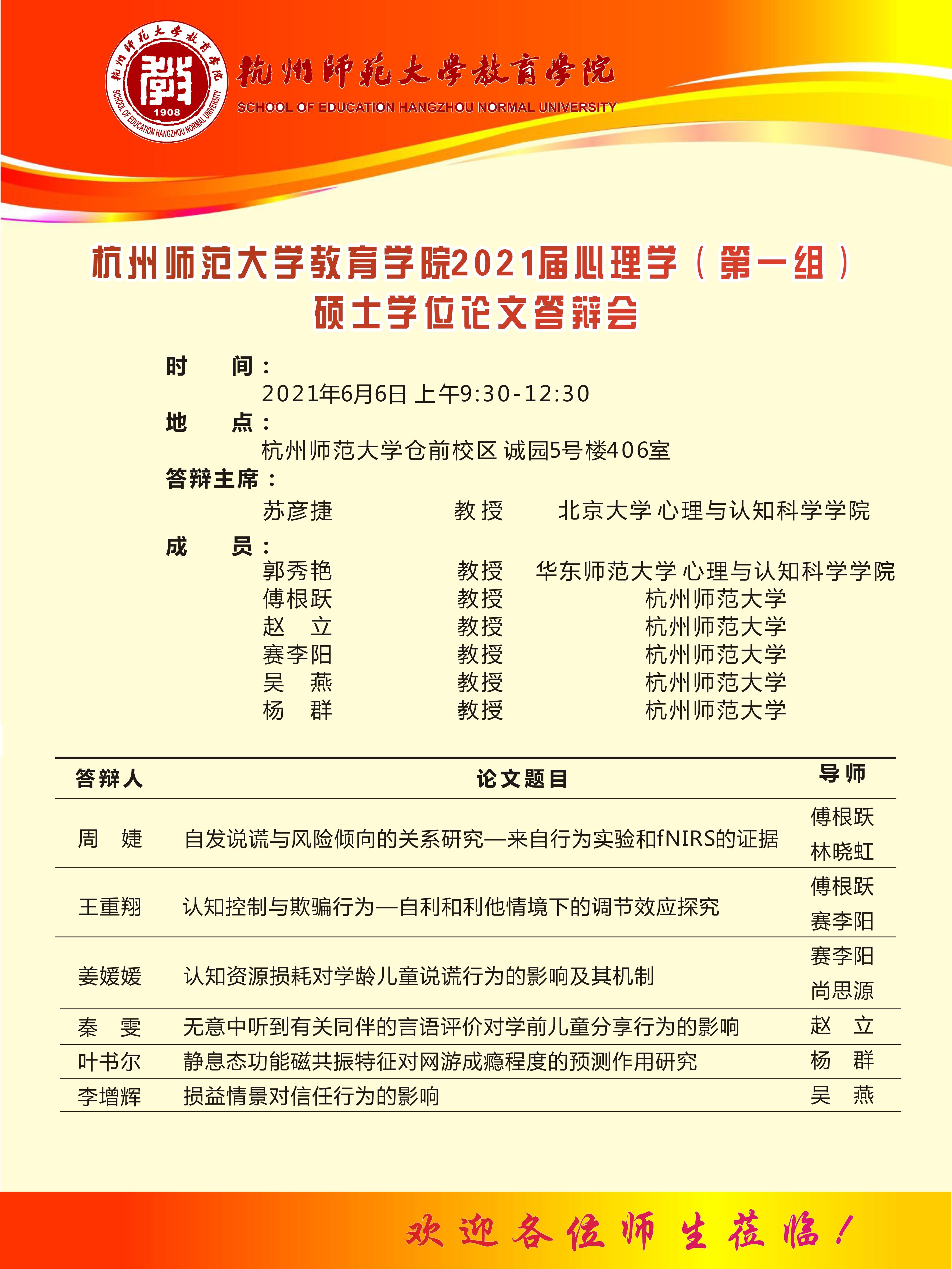 杭州师范大学教育学院2021届心理学(第一组)硕士学位论文答辩会
