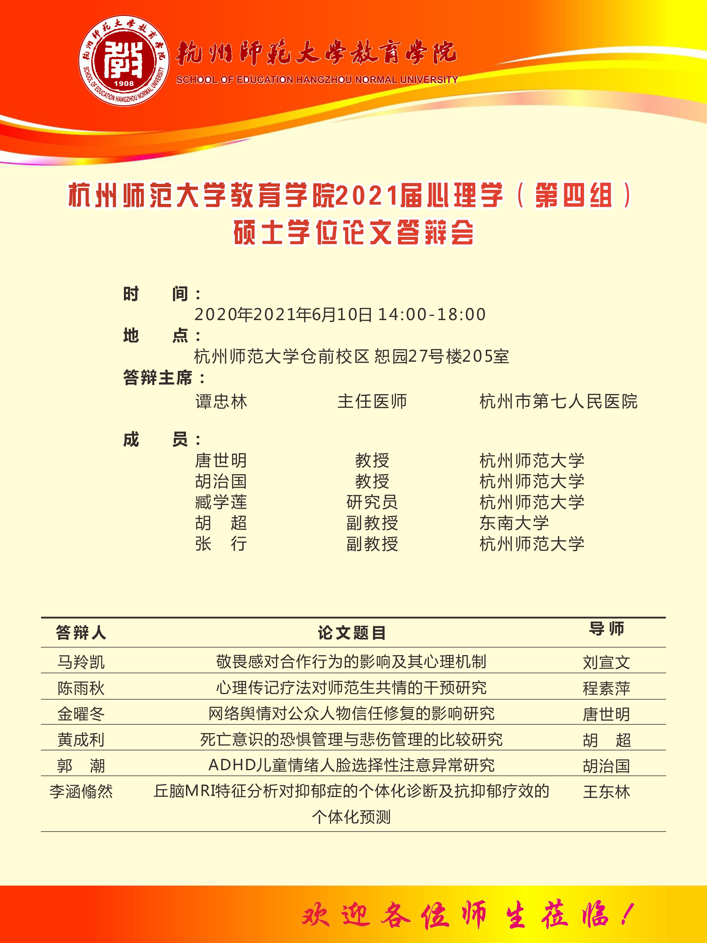 杭州师范大学教育学院2021届心理学(第四组) 硕士学位论文答辩会