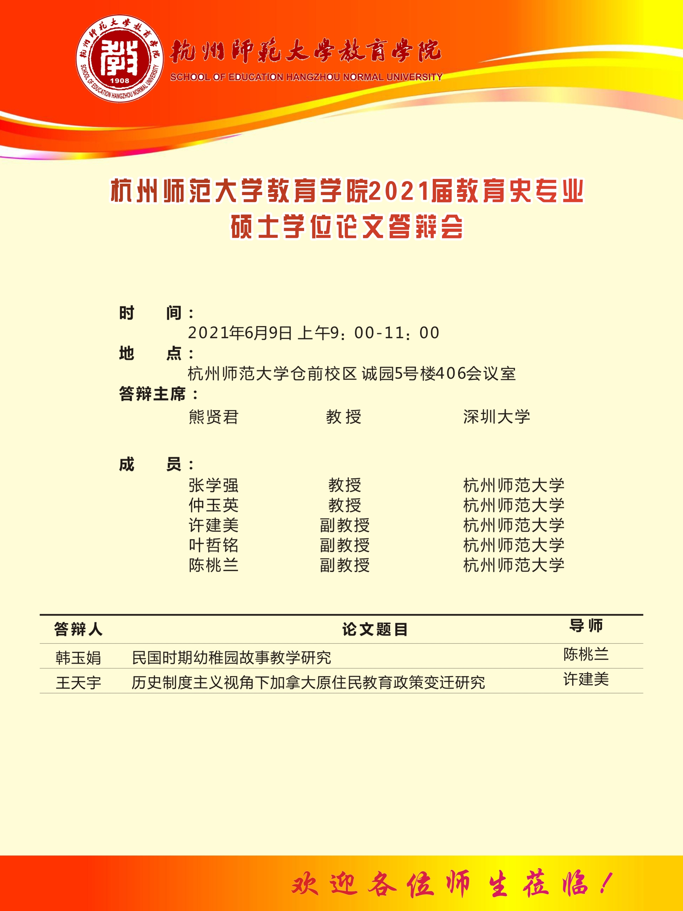 杭州师范大学教育学院2021届教育史专业硕士学位论文答辩会