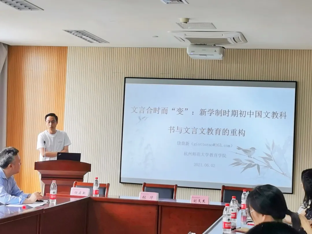 在第二个主题中,饶鼎新博士为我们带来题为“文言合时而‘变’:新学制时期初中国文教科书与文言文教育的重构”的探究。他的研究内容包括“新学制《初级中学国语课程纲要》与文言文教育中心的转移”、“传统古文文体门类的式微与圈点评注系统的淘汰”等几方面。饶博士以他生动的讲述向我们展示了文言文的独特魅力。