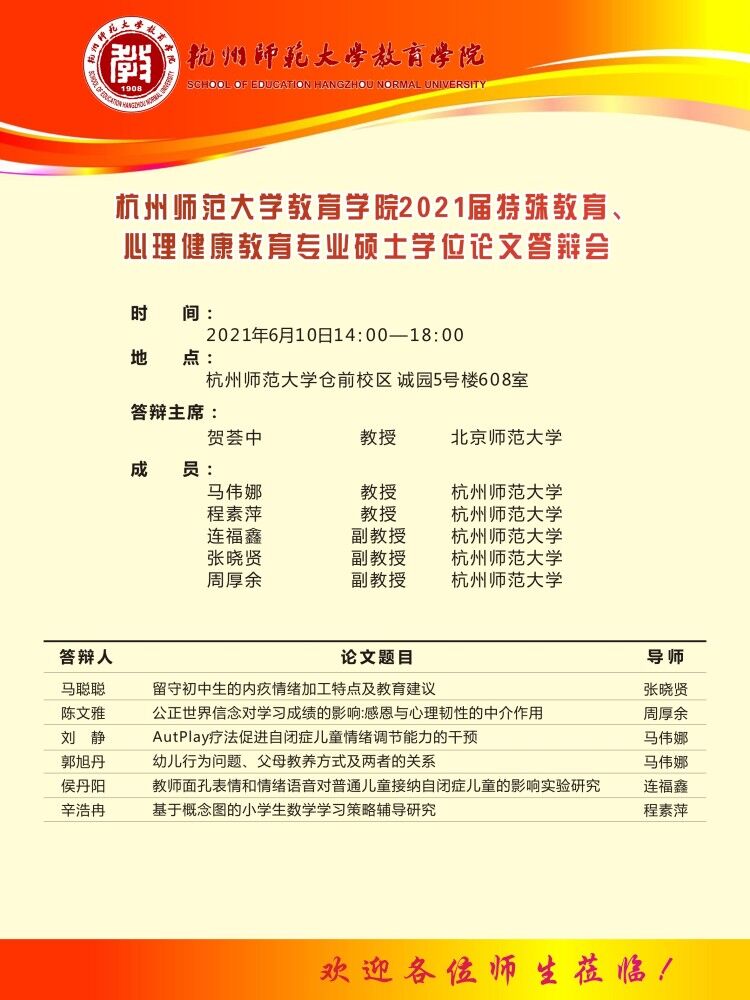 杭州师范大学教育学院2021届特殊教育、心理健康教育专业硕士学位论文答辩会