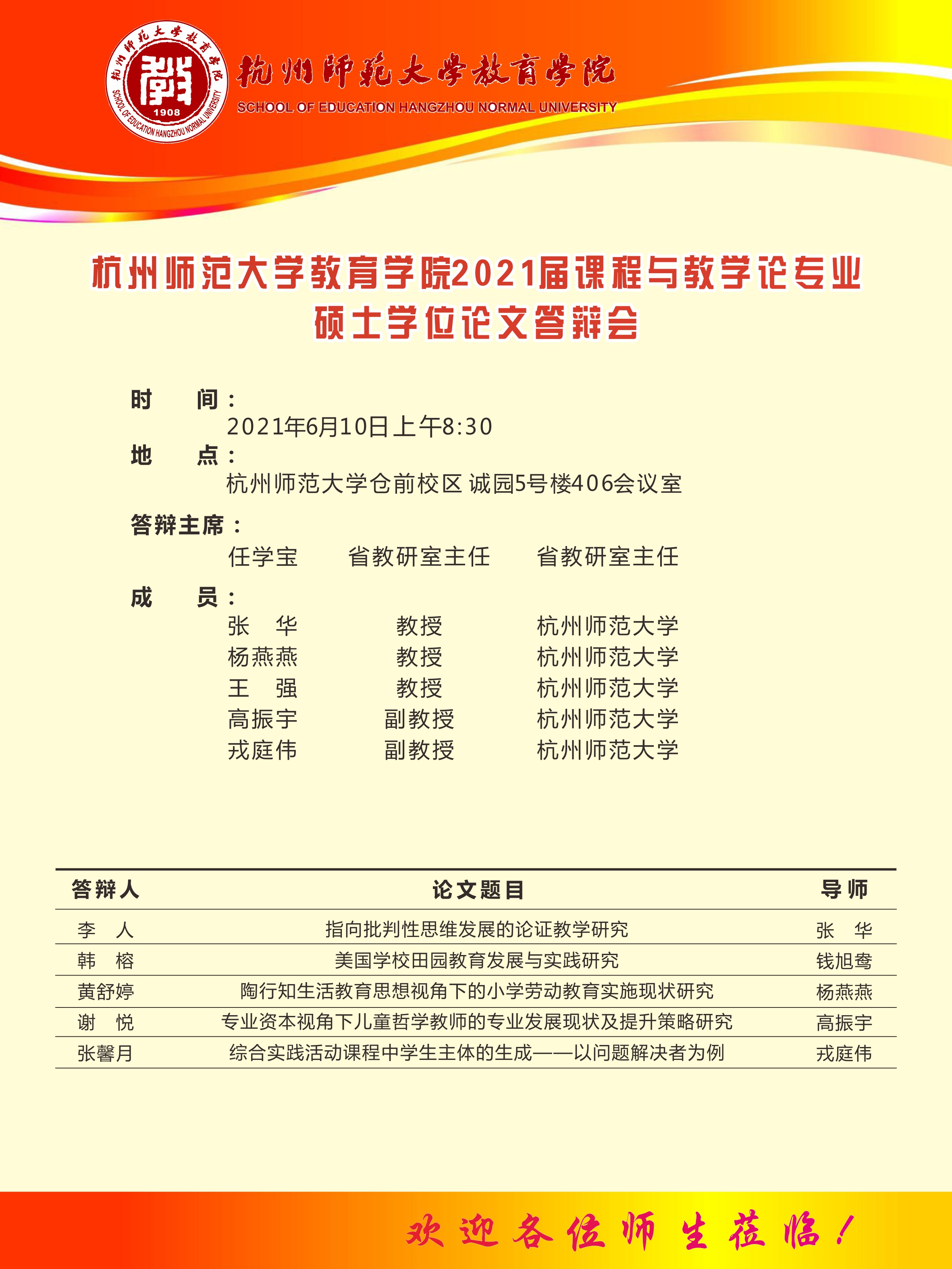 杭州师范大学教育学院2021届课程与教学论专业 硕士学位论文答辩会