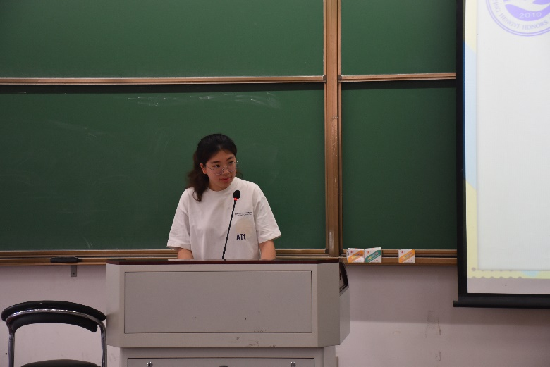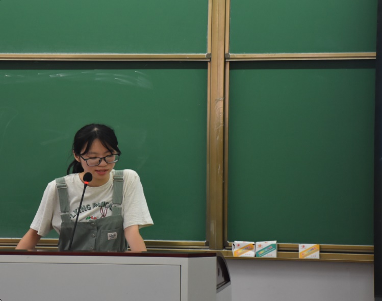 紧接着,由吕一代表全体实践同学进行发言。她指出学生要以实践平台为机遇,不断提高个人能力。