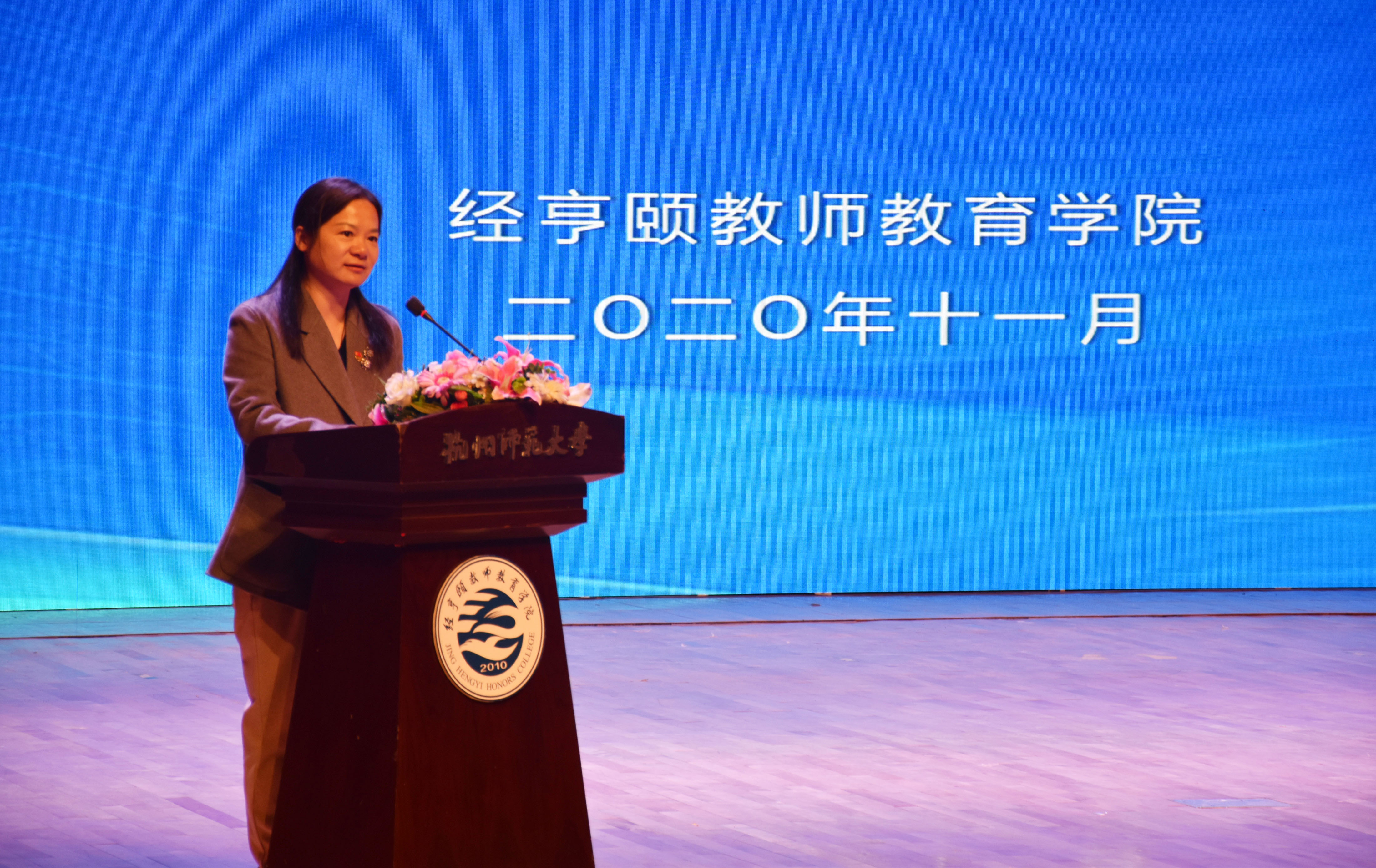 仓前实验中学校长庞仿英说到在生态课程教学改革的今天,我们大都用于自身理论与实践能力,到处学习,四处模仿,却总不能落地,无法生根,所以作为学生我们需要探究精神和素养,打开封闭的思想。最后她认为“遇见经亨颐”,便是“遇见专业,遇见卓越,遇见一往情深”。