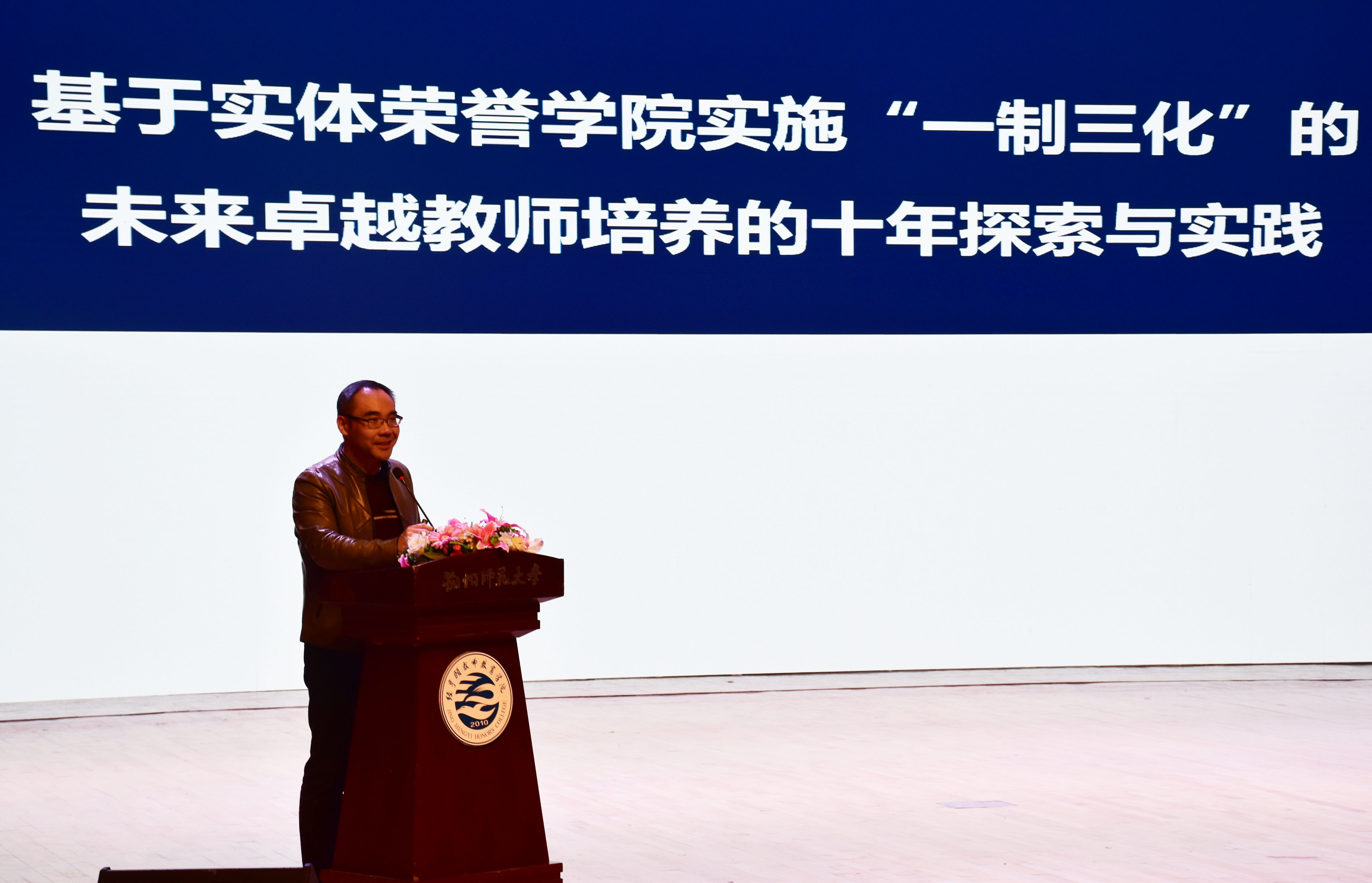 随后,天英足球即时比分 副院长蒋永贵汇报了学院十年探索的概况。他从2010年8月创办讲起,说明了学院的性质——卓越教师培养的“教改实验区”。接着又由师德养成、文化育人的目标引出三条实施途径,并进一步提到创构“一制三化”,抓住培养未来卓越教师内核的四个方式。同时,为了适应新时代的需求,天英足球即时比分 还创新了课程体系。十年的实践也换来了累累硕果,在硬指标上,学生具有较高学术素养和创新能力,软指标上,学生师德表现、综合素质都受到了校内外的广泛认可。