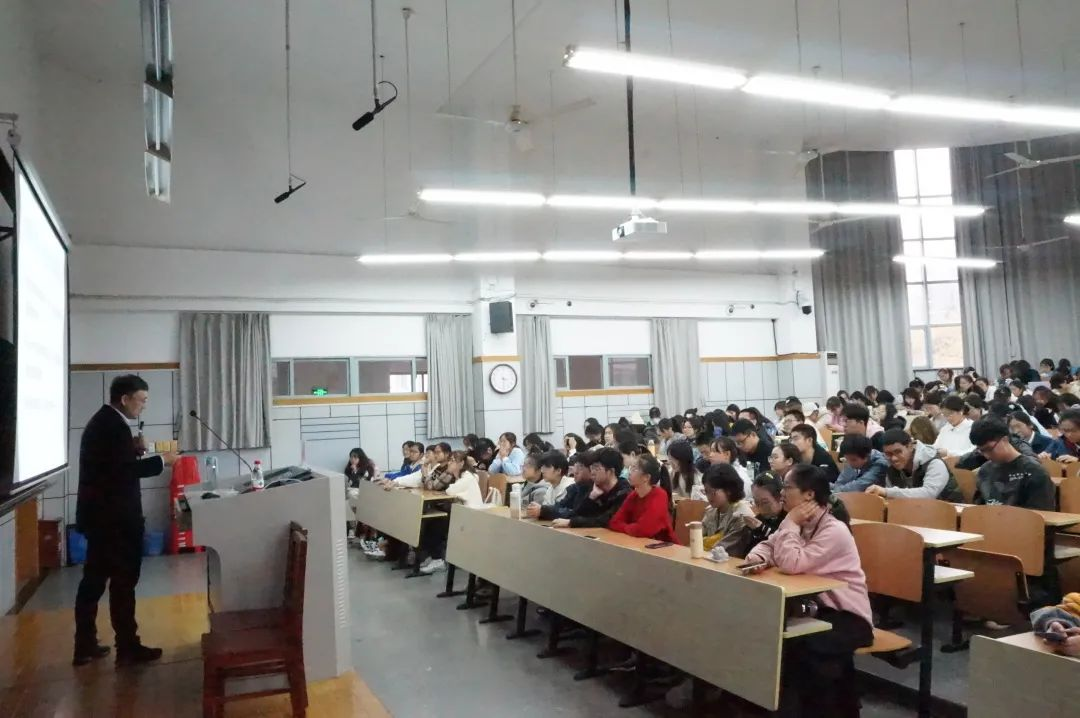 在讲座伊始,张老师用夸美纽斯的名言“太阳底下没有比教师的职业更高尚更优越的了”引出了讲座主题——师范生职业发展的道路选择。随后向同学们科普了教师职称的晋升之路相关知识,并深度剖析了幼儿园、中小学正高级教师职称晋升的三条路线和大学教授职称晋升的一条路线。