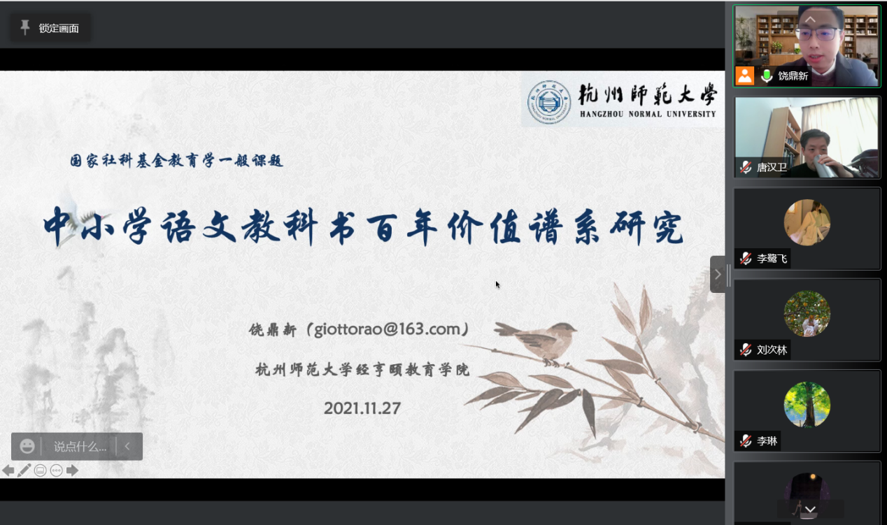 2021年11月27日,由天英足球即时比分 - 最新实时比赛结果与赛况更新 饶鼎新负责的国家社会科学基金2021年度教育学一般课题“中小学语文教科书百年价值谱系研究”(课题编号BEA210113)在线上举行了开题论证会。